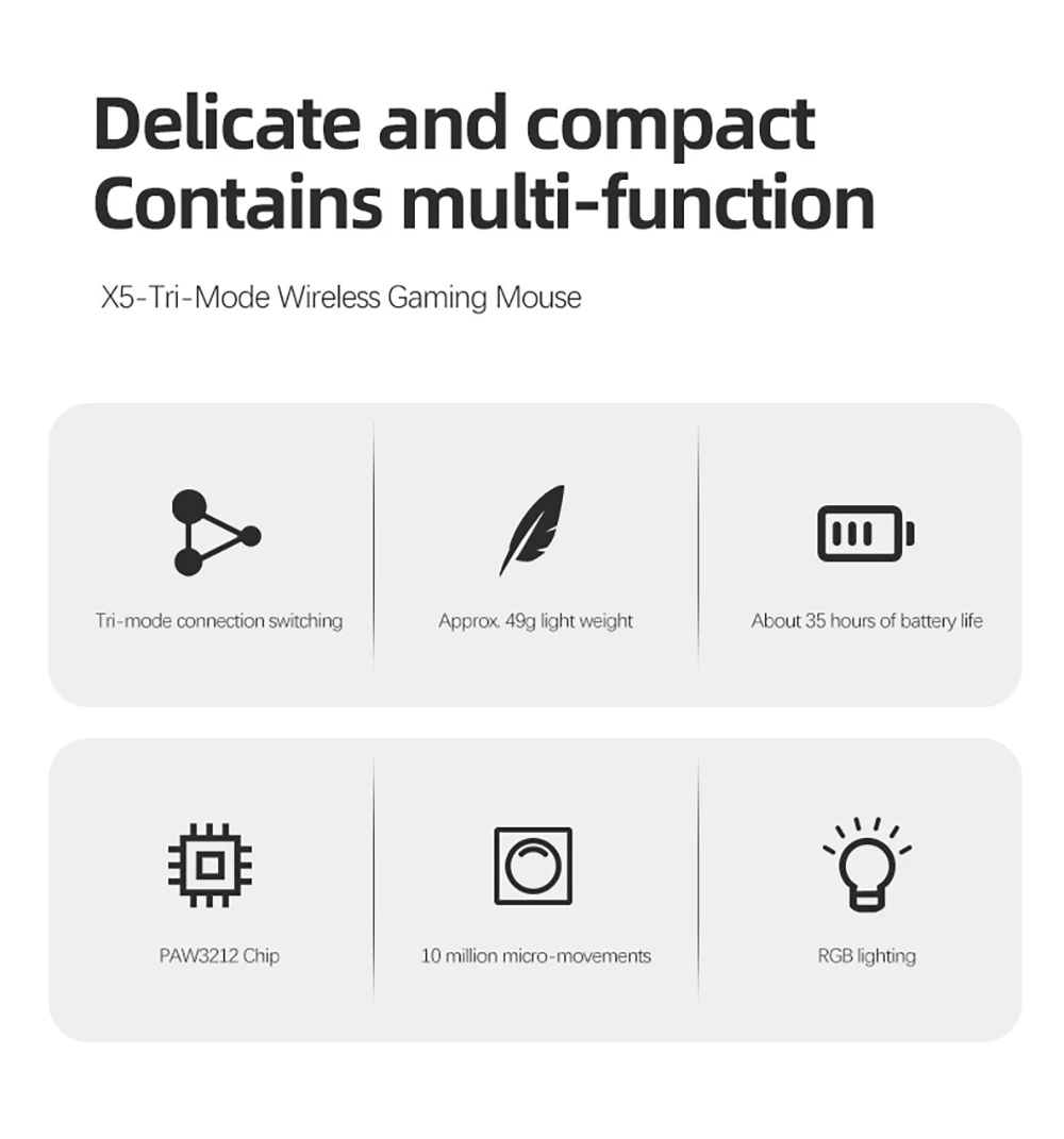 Comprar Ratón inalámbrico para juegos X5 con 3 modos, BT/2,4 Ghz/USB-C, PAW3212, Sensor óptico, batería recargable, RGB, para PC, tableta y Escritorio