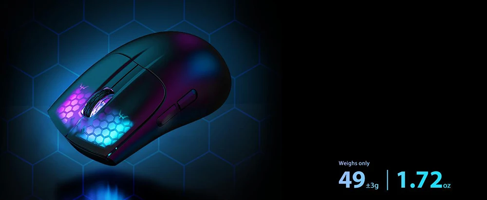 【Lightweight 49 ± 3G RGB Honeycomb Design】El ratón con cable está hecho de material ABS ligero de alta calidad y diseñado con forma ergonómica, reducir el peso y hacer que el ratón sea más flexible y más fácil de usar durante mucho tiempo sin fatiga.