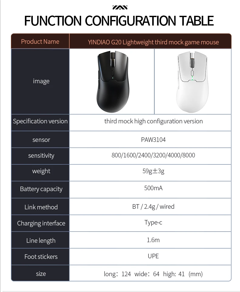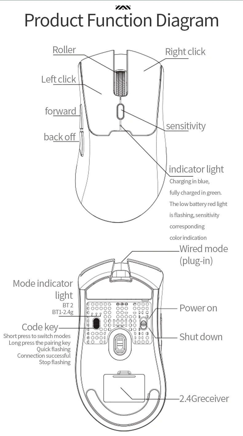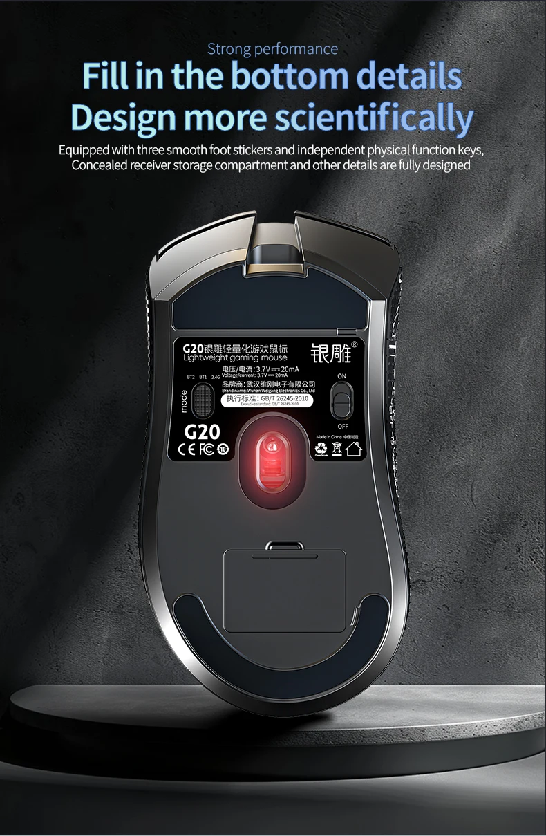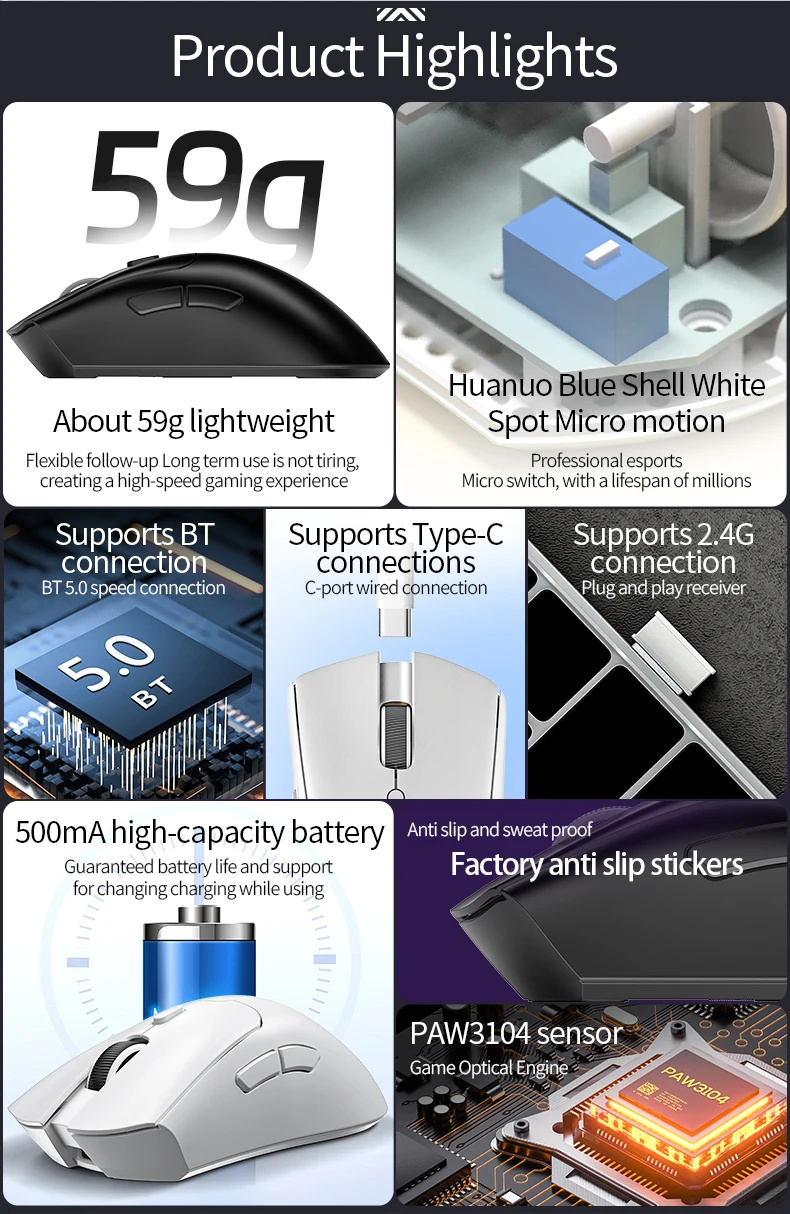 Ratón inalámbrico ligero para juegos con 3 modos con cable 2.4G BT para computadora portátil Deskbtop
