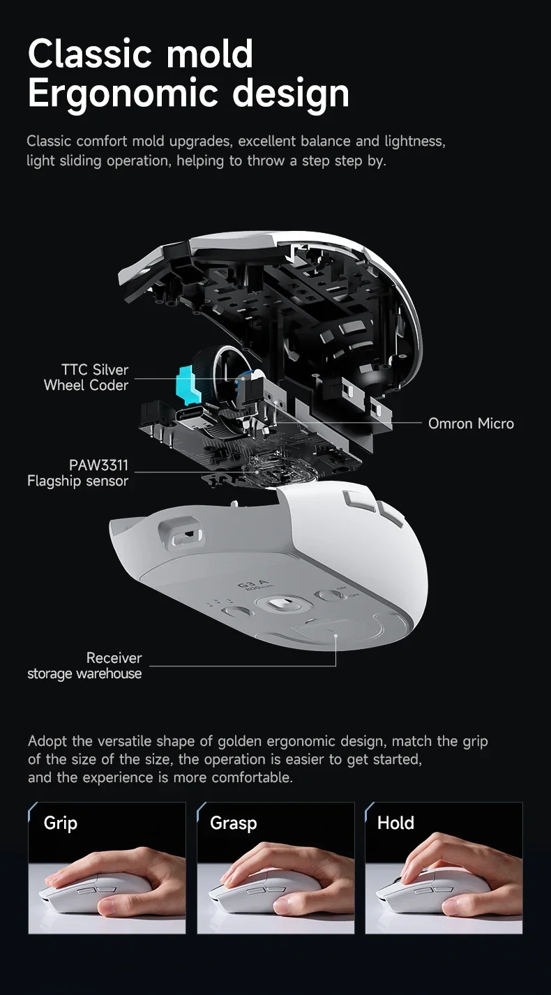 Comprar Ratón inalámbrico ligero MCHOSE G3, personalizado, triple modo, con cable, Bluetooth, 2,4G, 1K, 12000dpi, PAW3311, conexión para juegos