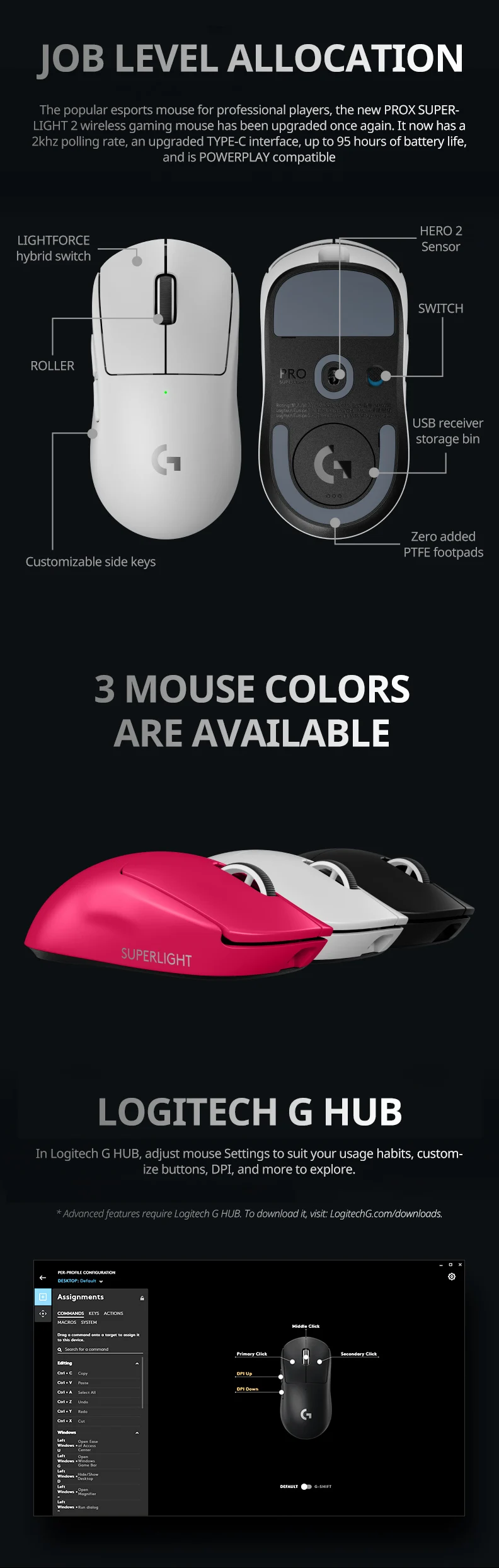 Logitech (G) PRO X SUPERLIGHT 2 Ratón inalámbrico gpw3 generación BTW King 3 juego