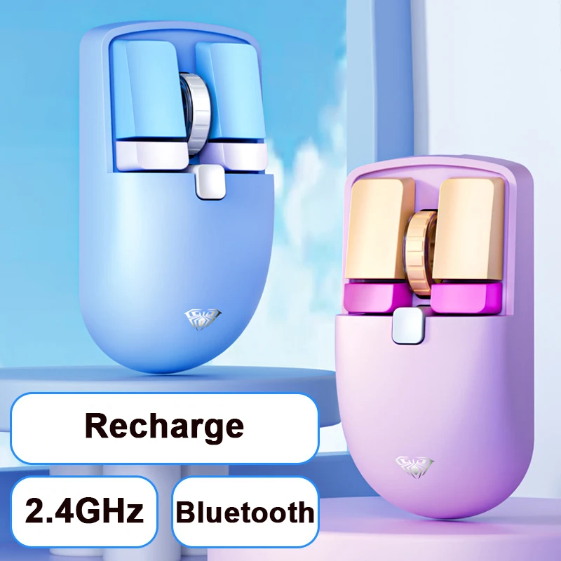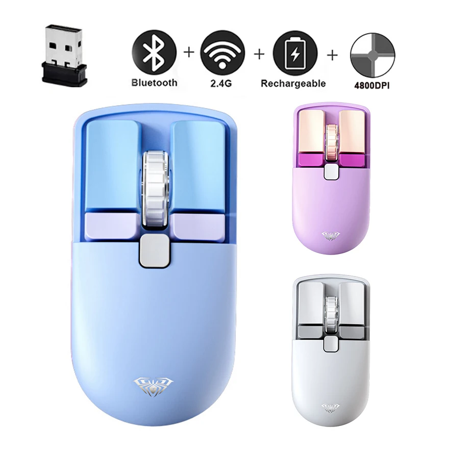 Comprar Ratón inalámbrico de modo Dual con Bluetooth + 2,4G, Mouse ergonómico silencioso para juegos, recargable, 4800 DPI ajustable, para ordenador portátil, PC y Notebook