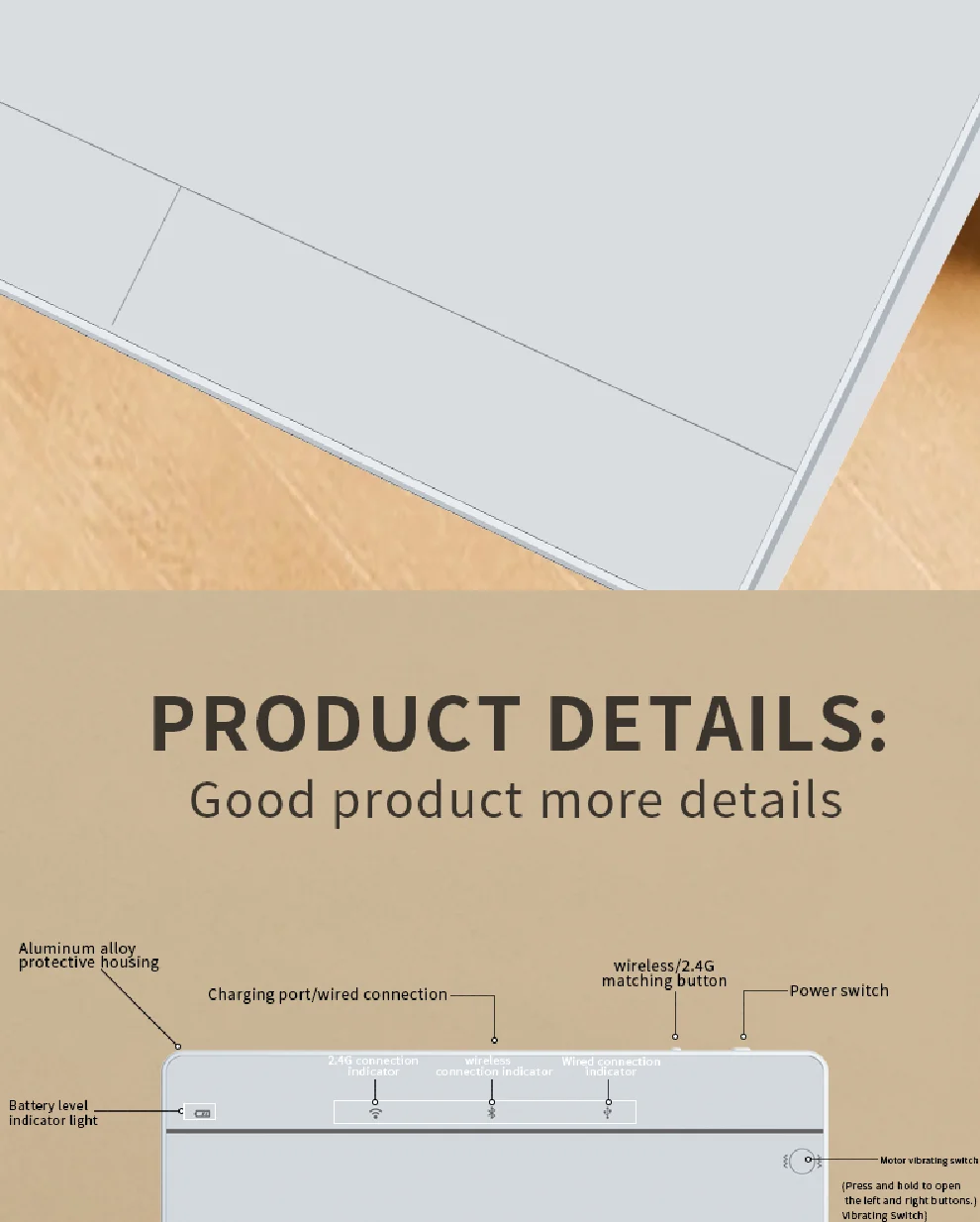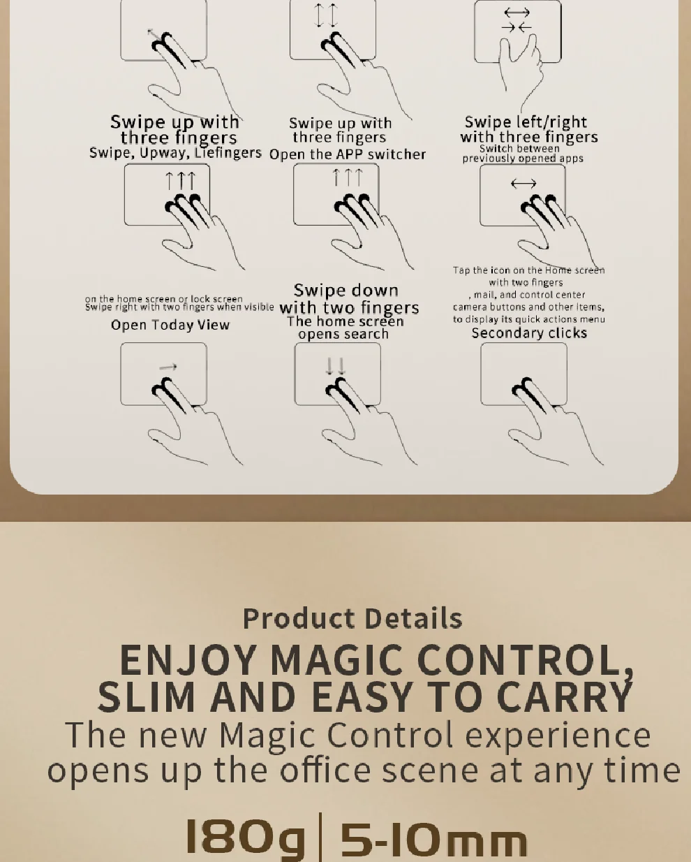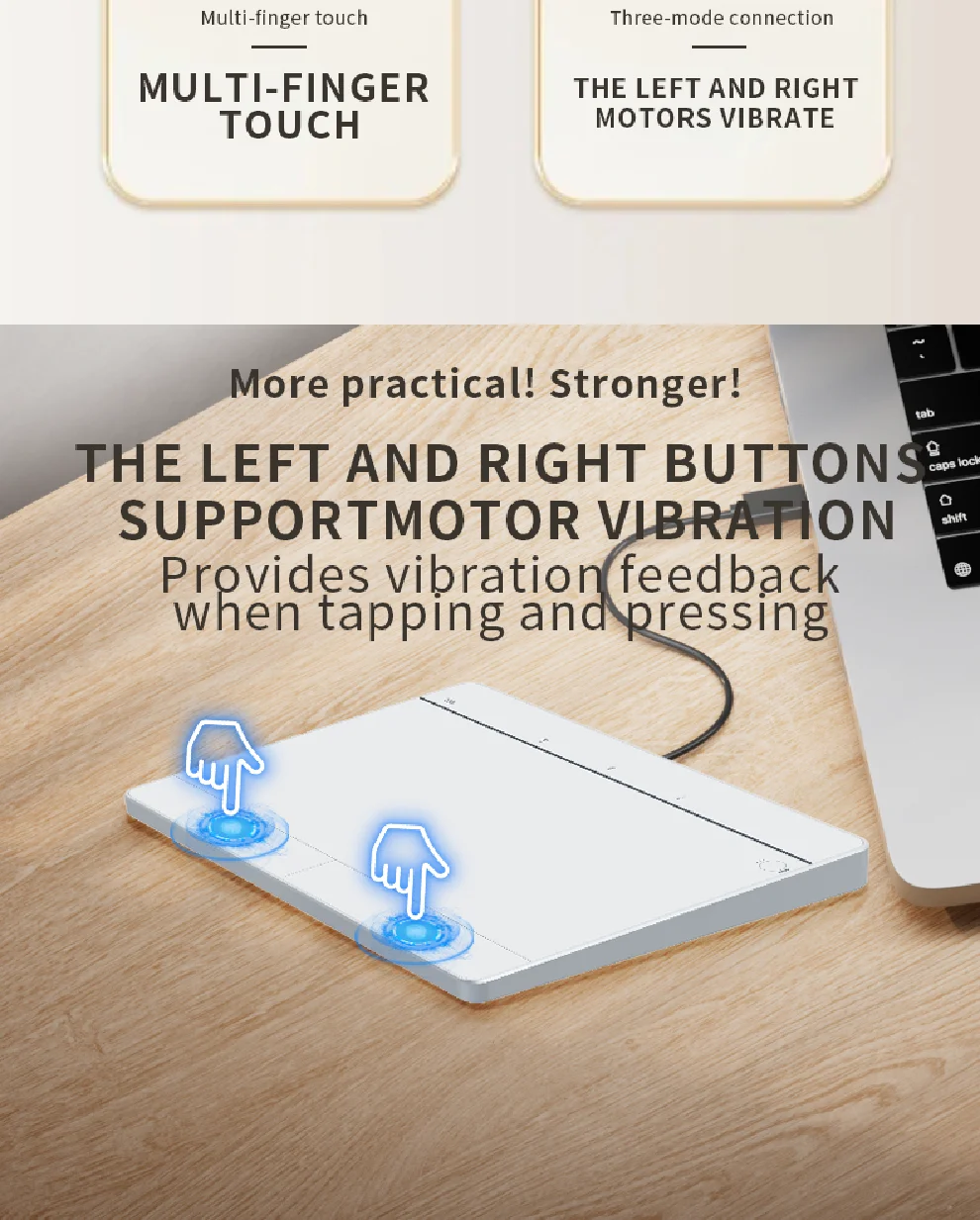 Diseño de metal ultrafino: Elegante y con estilo, cuenta con una gran superficie táctil de 6,4 pulgadas con dimensiones de 6,4 x 4,8 x 0,4 pulgadas.Su superficie ultrasuave y su diseño de metal delgado brindan una experiencia de usuario cómoda y eficiente para todas sus tareas. Clices físicos convenientes: el panel táctil incluye botones izquierdo y derecho del mouse integrados, lo que permite la selección de texto, la edición de documentos y el arrastre en áreas grandes sin esfuerzo. preciso