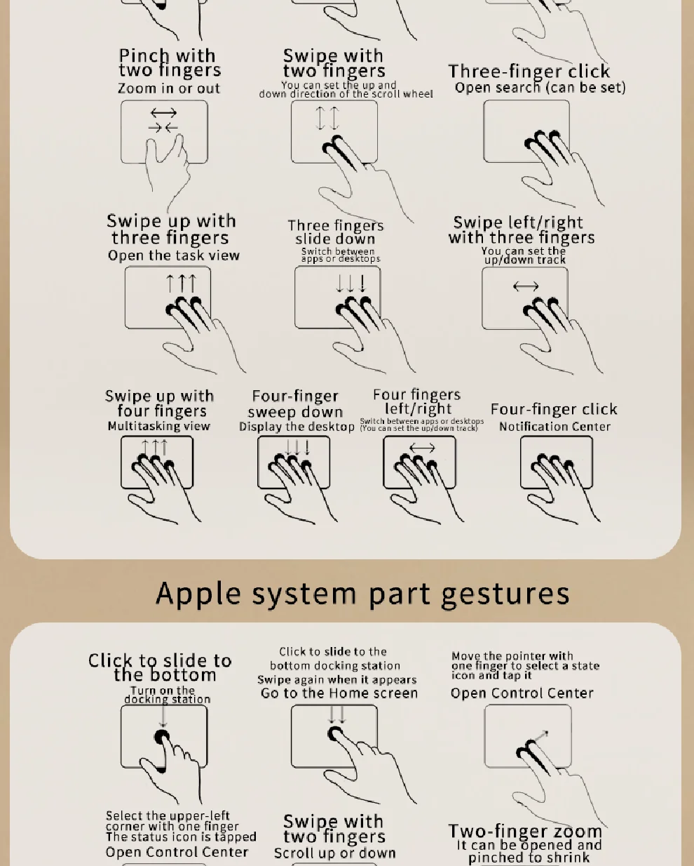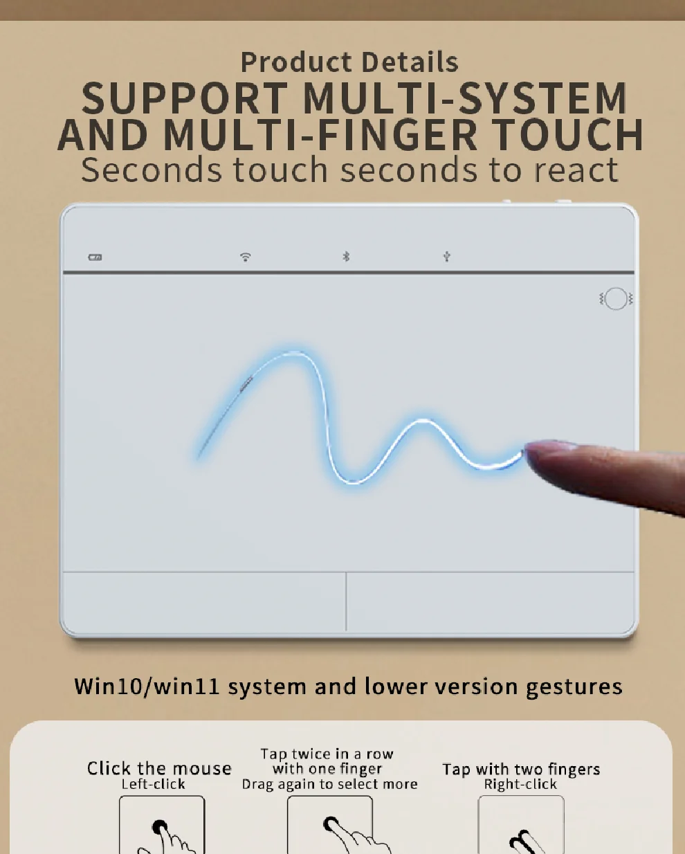 Compatibilidad :Advertencia Trackpad es compatible solo con Windows 10/11 Nota: Solo Bluetooth: conéctese solo a través de Bluetooth.No admite la conexión inalámbrica con el receptor USB No es compatible con dispositivos macOS u otras plataformas que no son de Windows Consejos cálidos sobre cómo ajustar la velocidad del cursor del panel táctil: