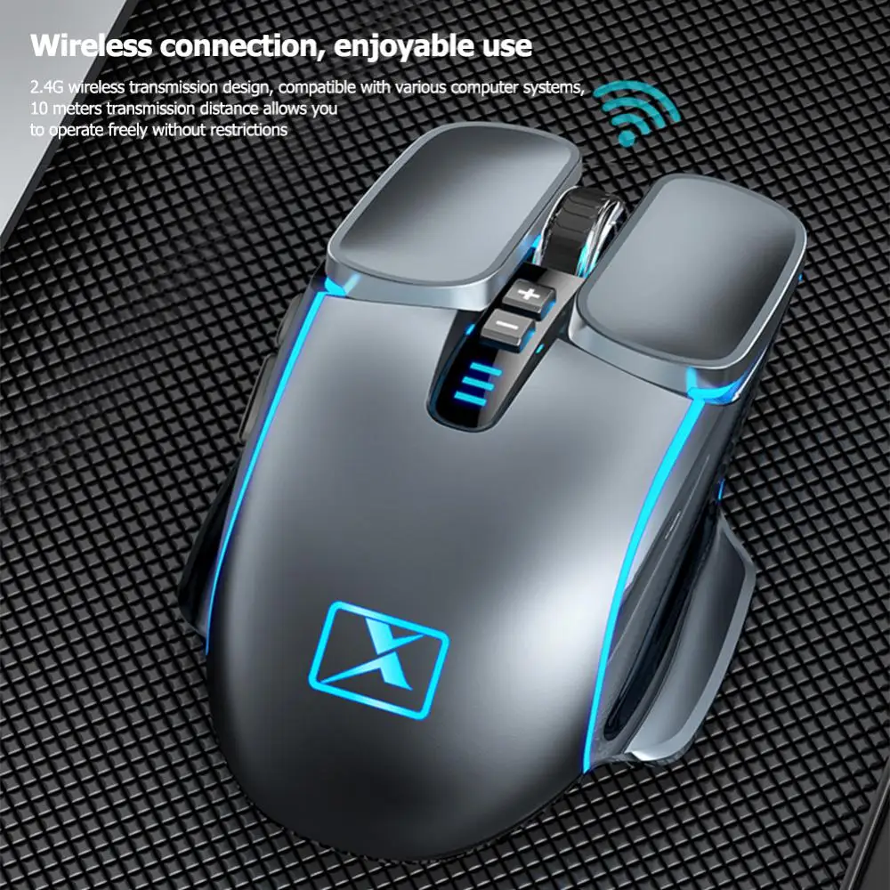 Ratón inalámbrico recargable 2,4G USB Gaming Mouse Computadora Ergonómico Mause con retroiluminación RGB 2400 DPI Ratones para computadoras portátiles PC