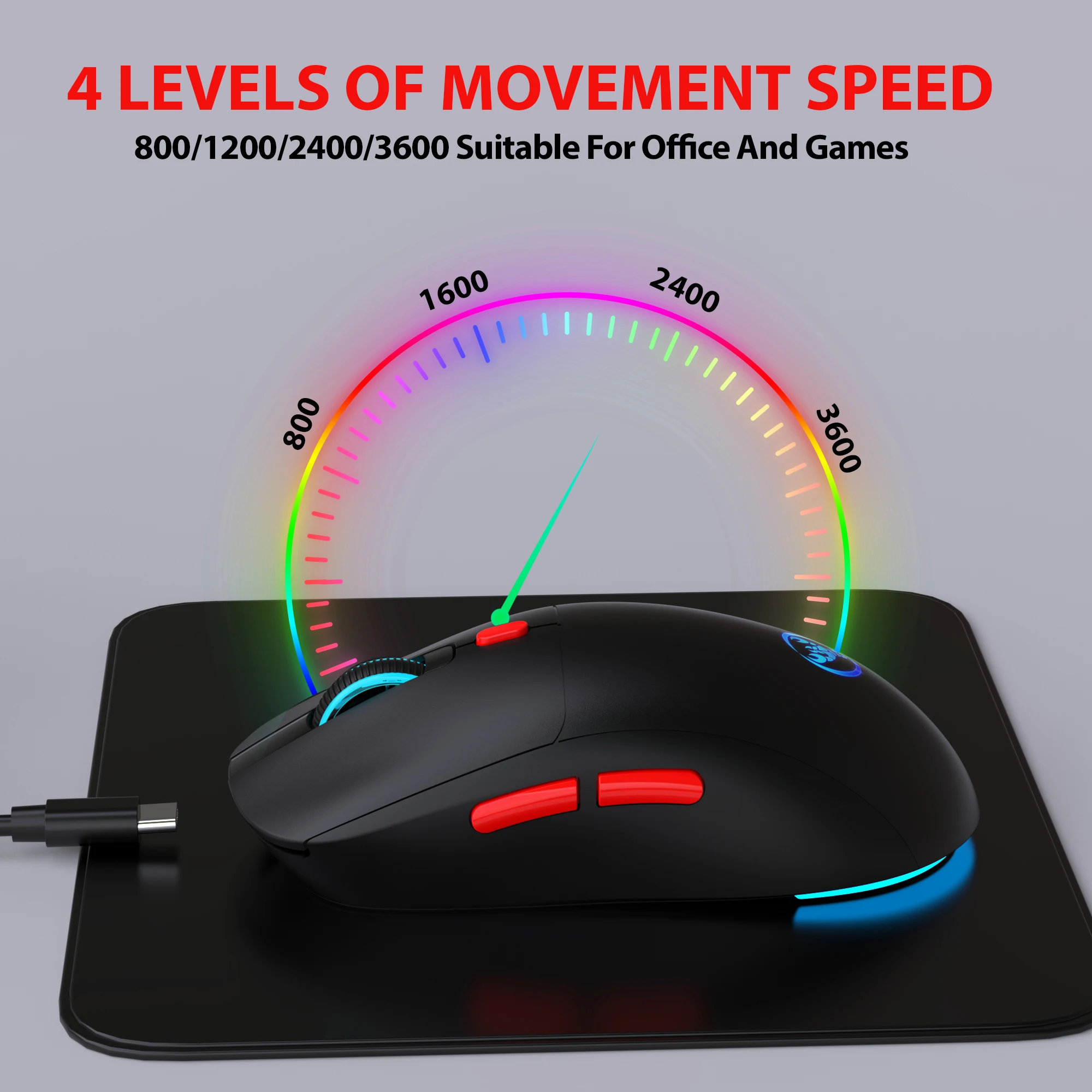 2: Precisión y velocidad: con una velocidad de seguimiento máxima de 4800 DPI y cuatro niveles ajustables, este ratón garantiza un movimiento suave y preciso.