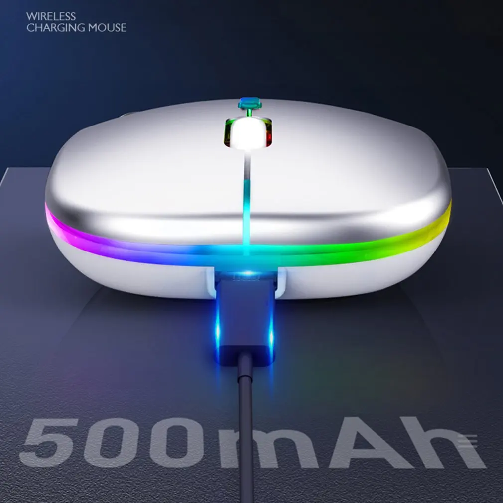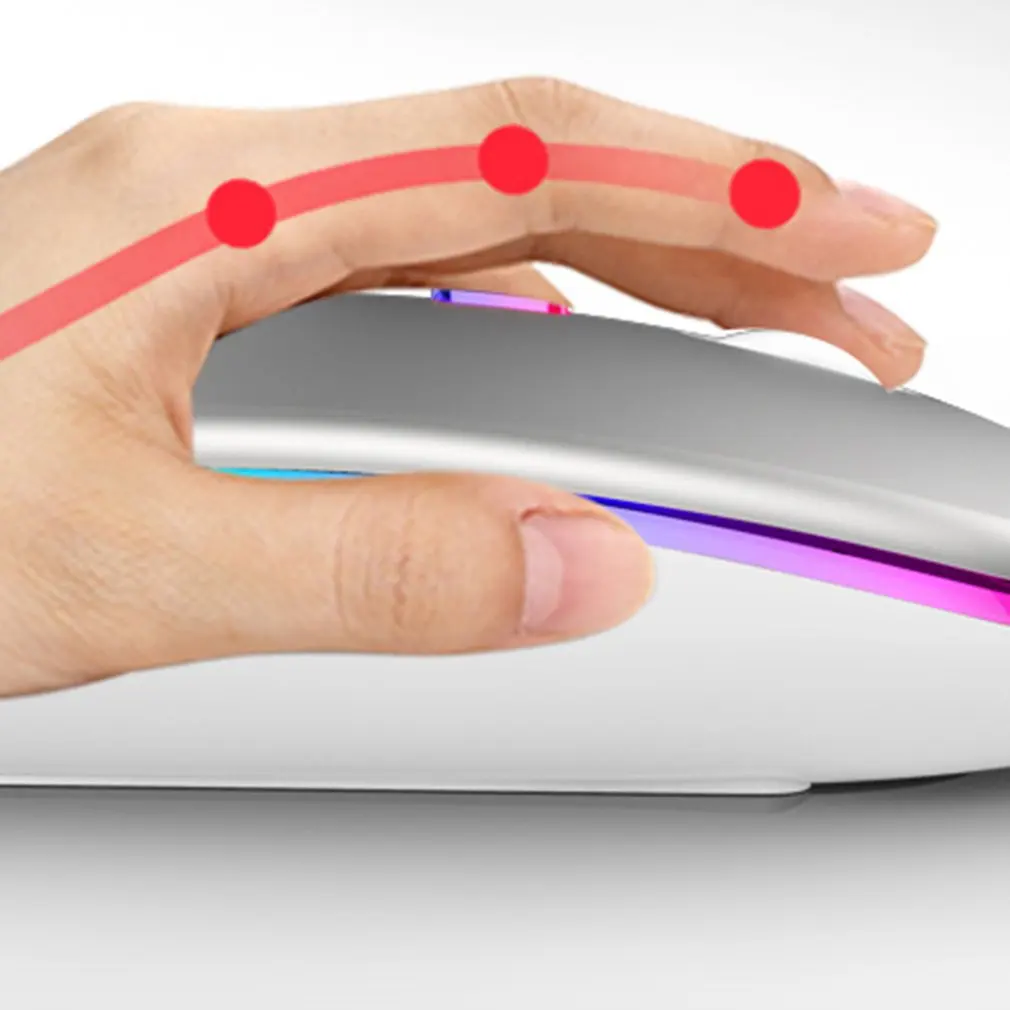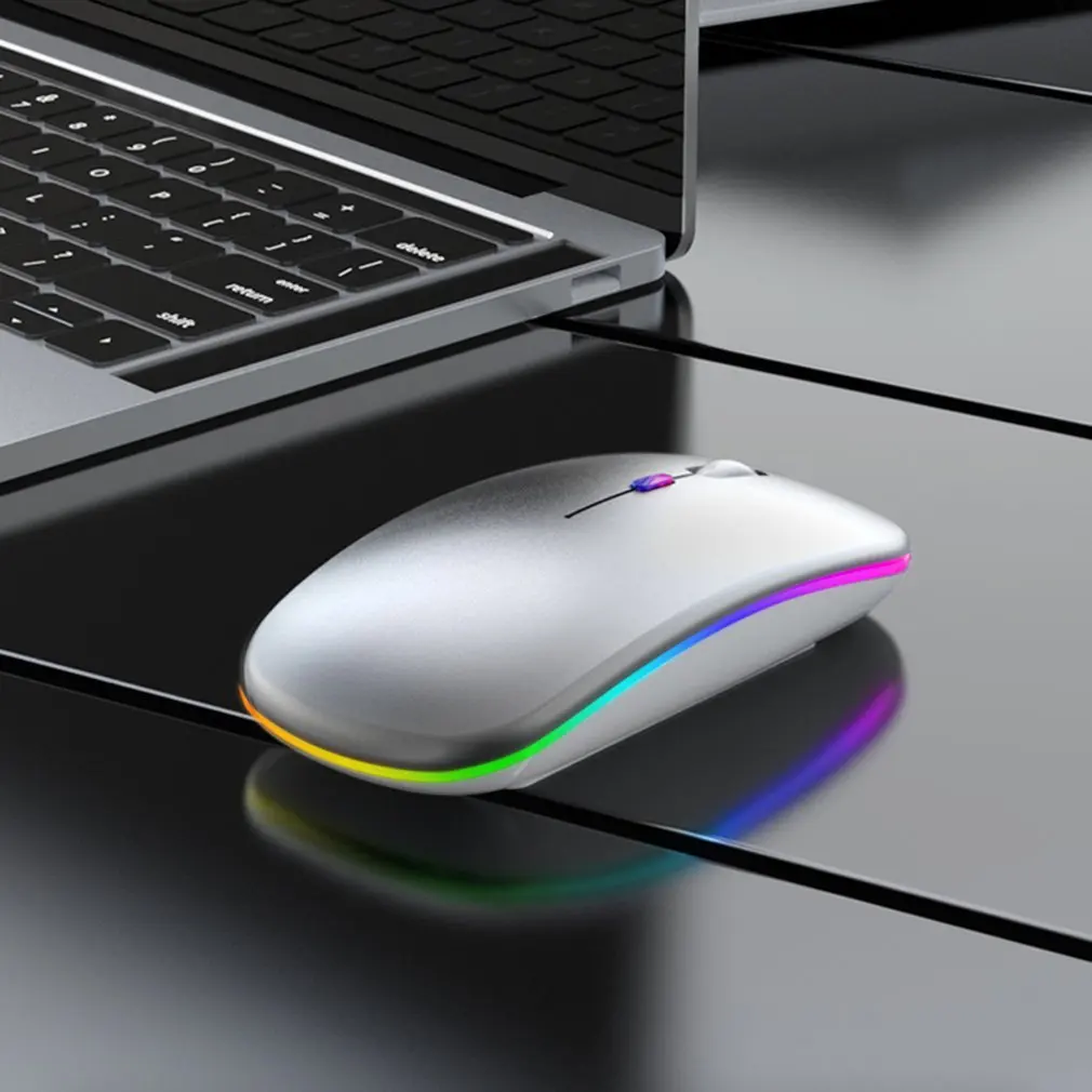 Comprar Ratón inalámbrico con retroiluminación LED para ordenador, periférico con retroiluminación LED, recargable, RGB, ergonómico, compatible con Bluetooth