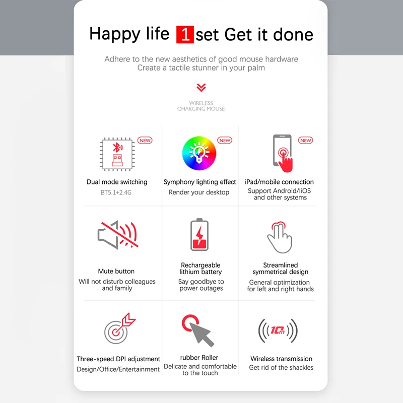 1.Nueva actualización: tecnología de carga única, batería de litio incorporada