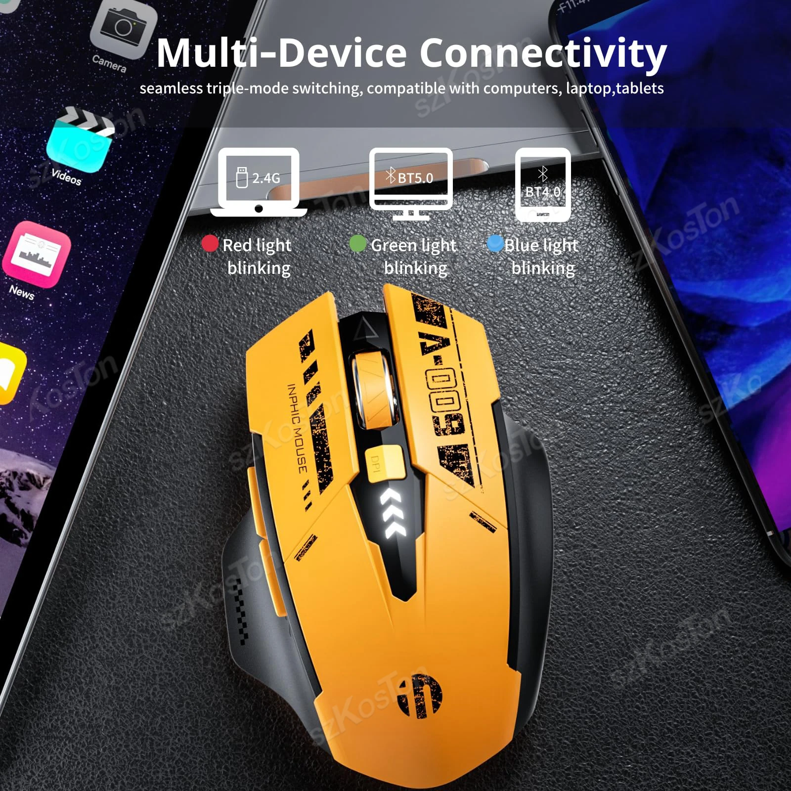 Conectividad de modo triple: este mouse bluetooth admite tres modos de conexión (BT5.0/BT4.0/2.4G), que ofrece amplia compatibilidad con computadoras de escritorio, portátiles y tabletas, lo que le permite cambiar sin esfuerzo entre múltiples dispositivos según sus preferencias