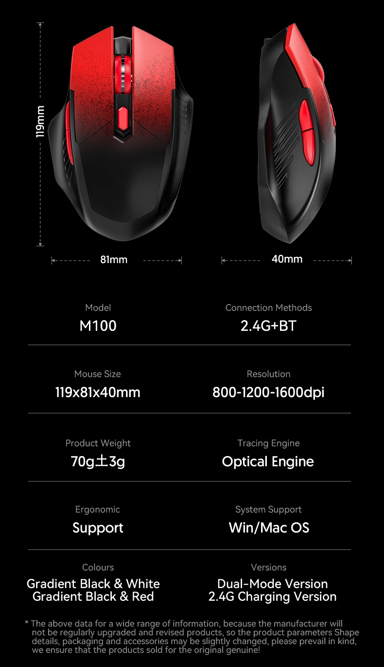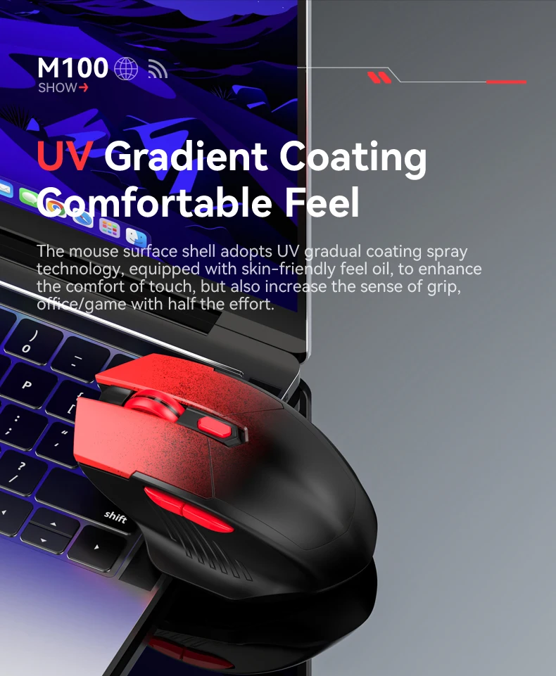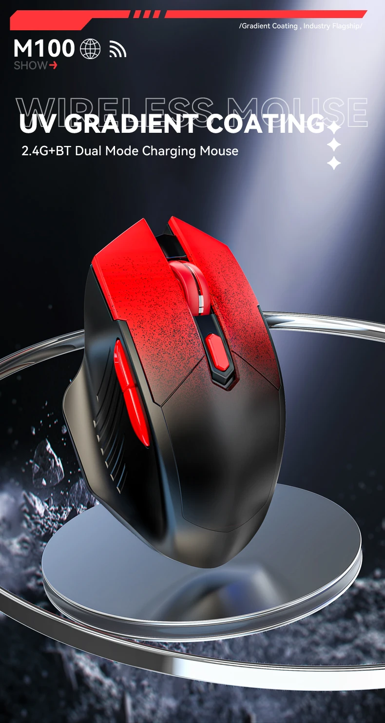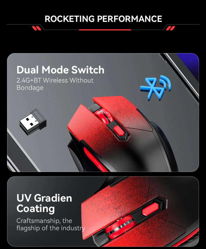 El color degradado se ve muy bonito y me gusta mucho este ratón. Tiene dos modos de conexión, inalámbrico y Bluetooth, que son realmente convenientes