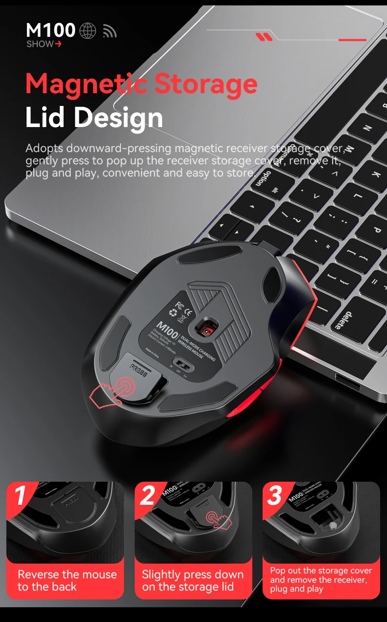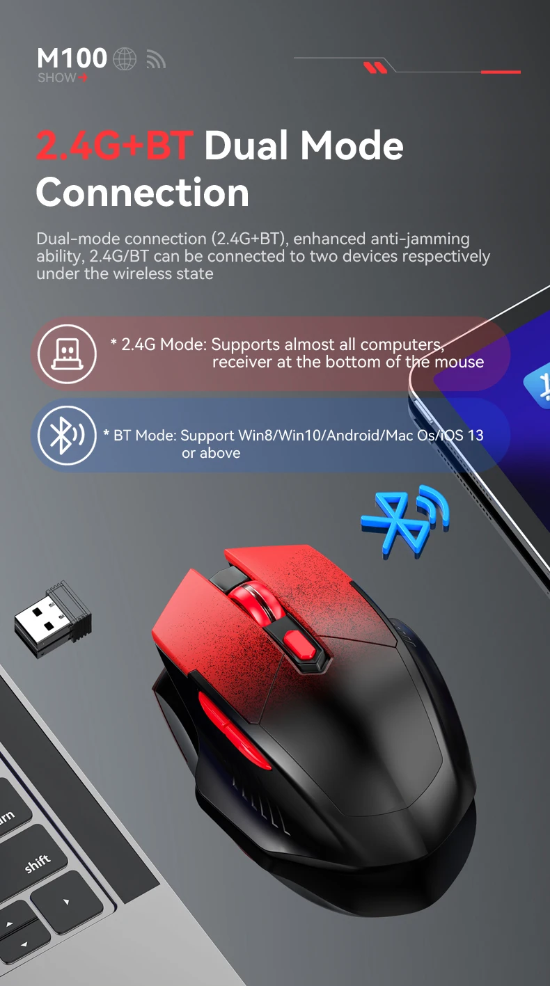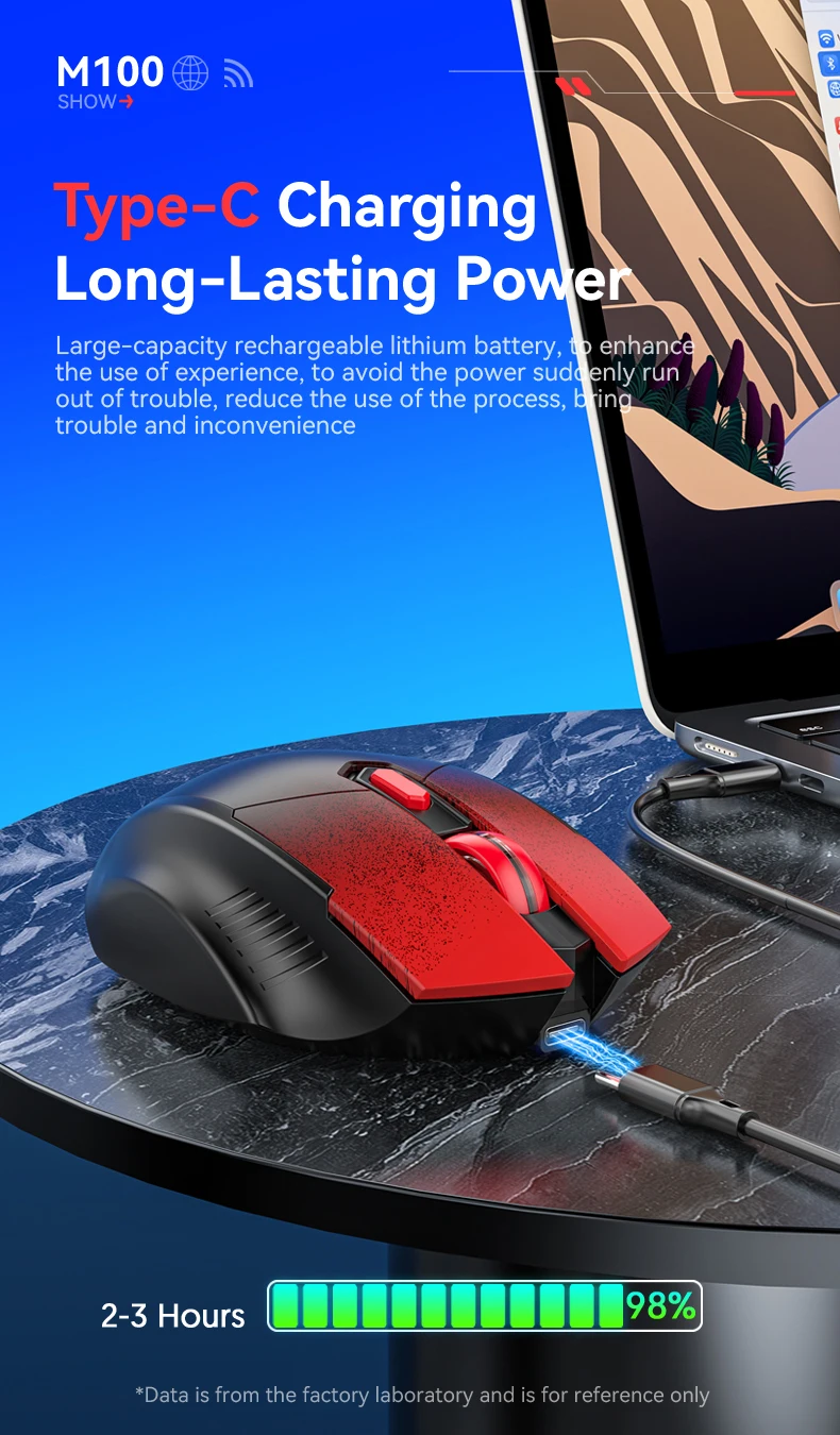 El color degradado se ve muy bonito y me gusta mucho este ratón. Tiene dos modos de conexión, inalámbrico y Bluetooth, que son realmente convenientes