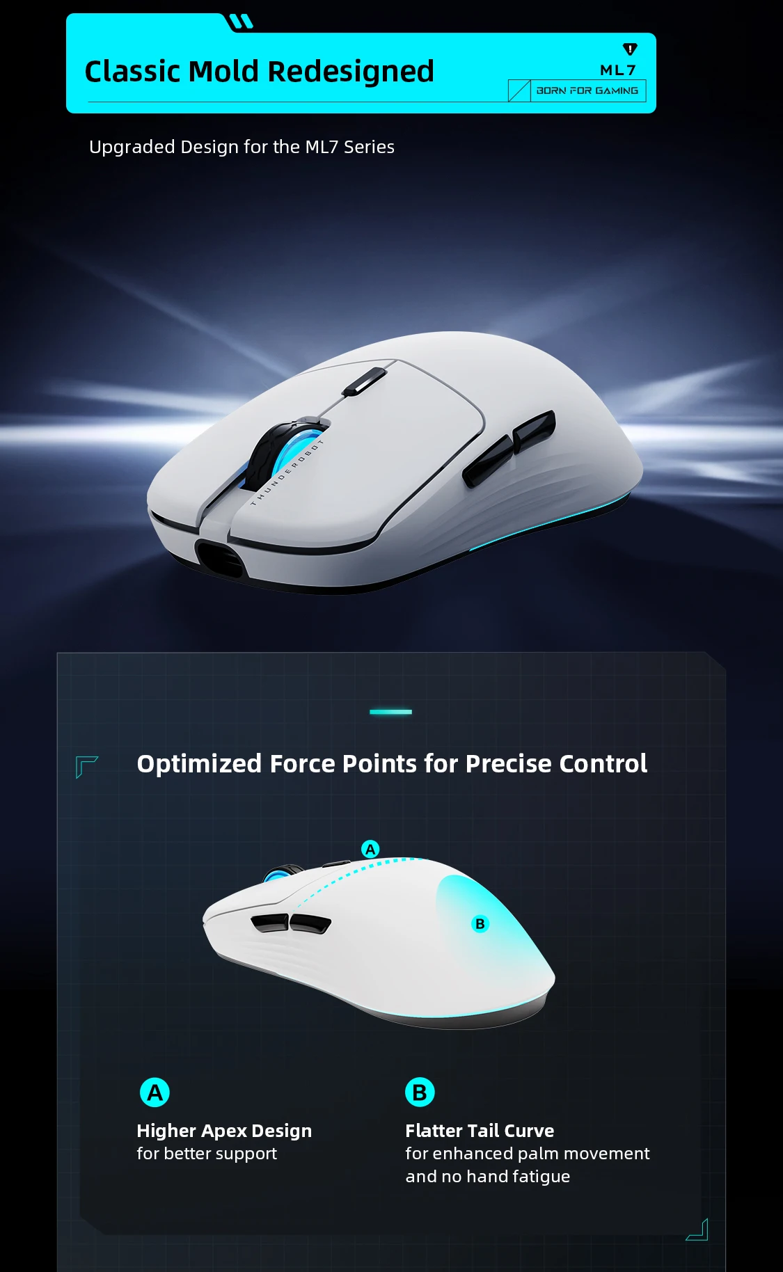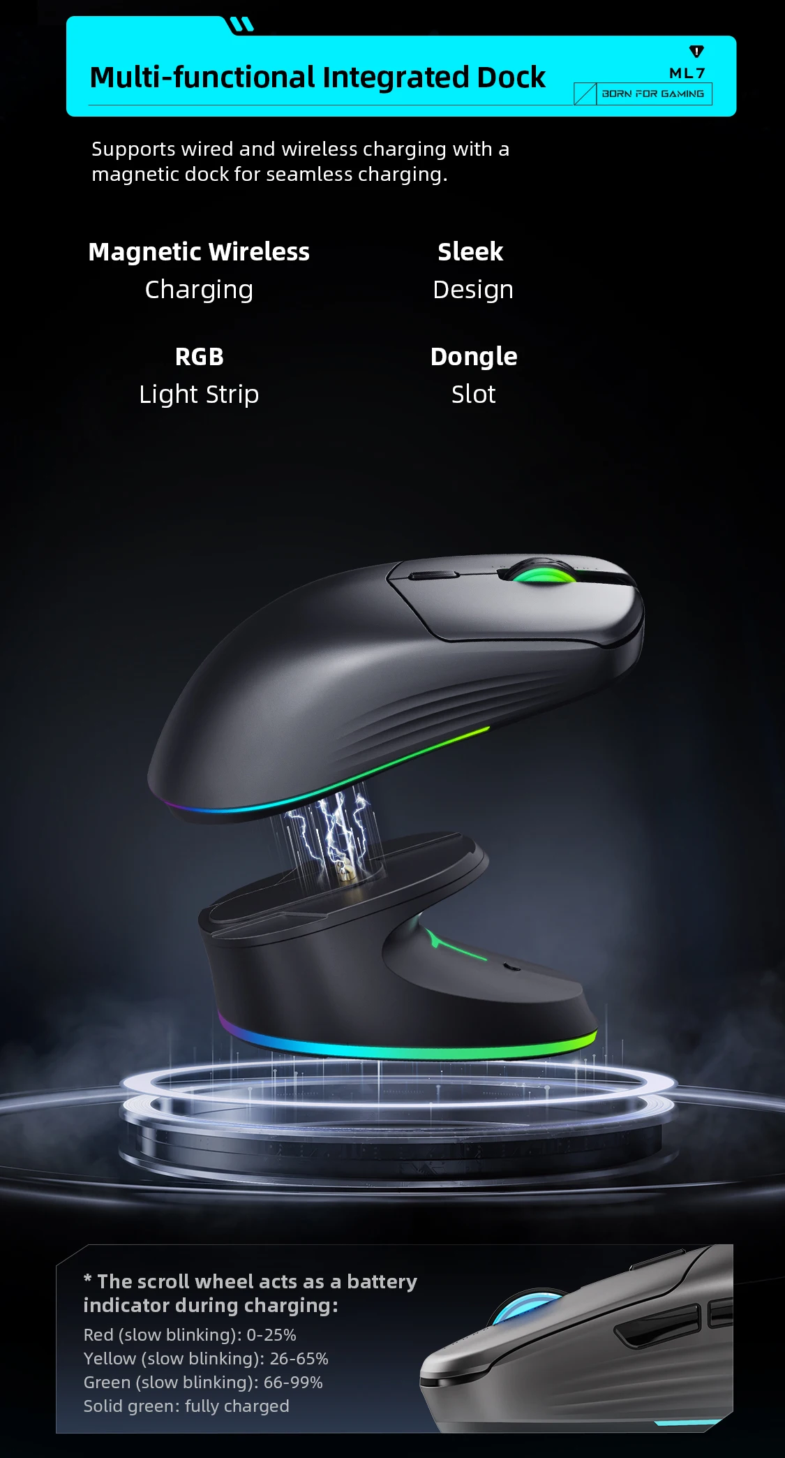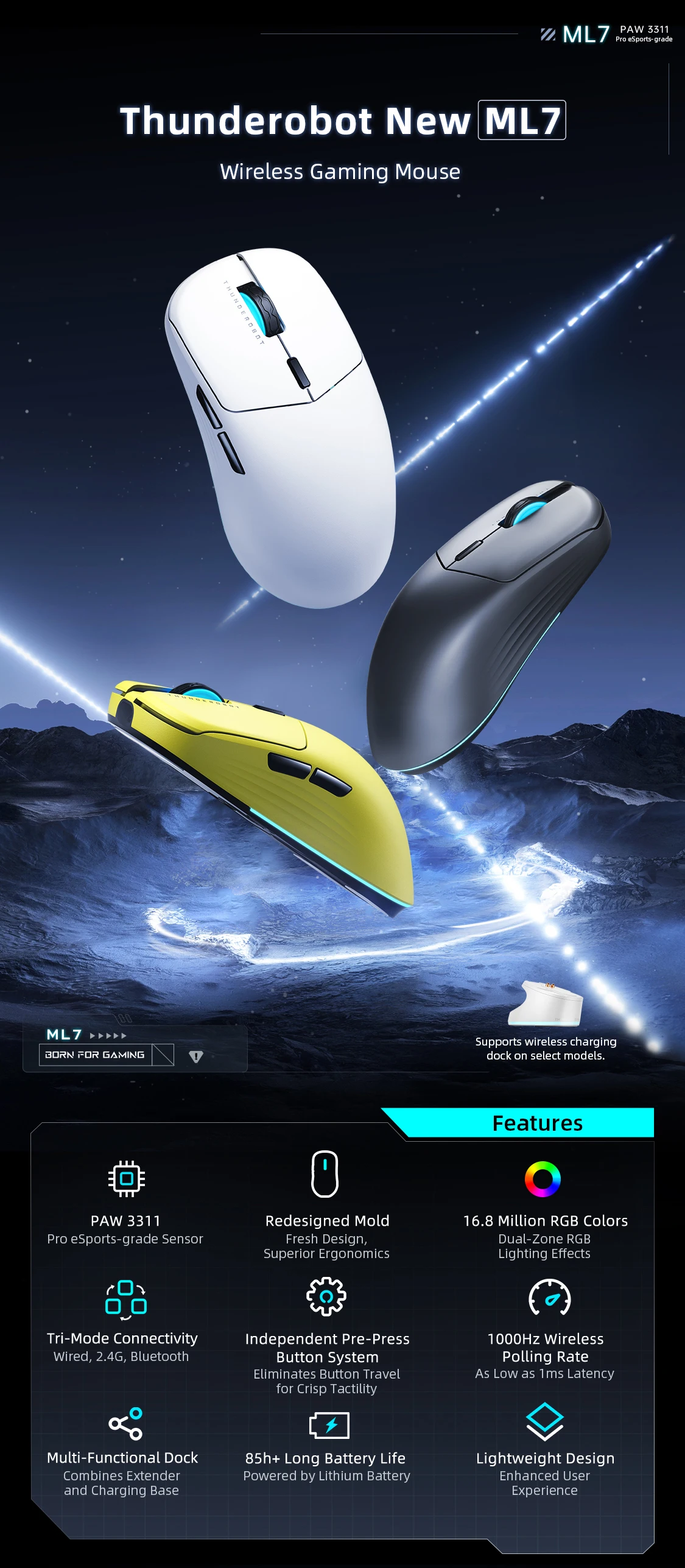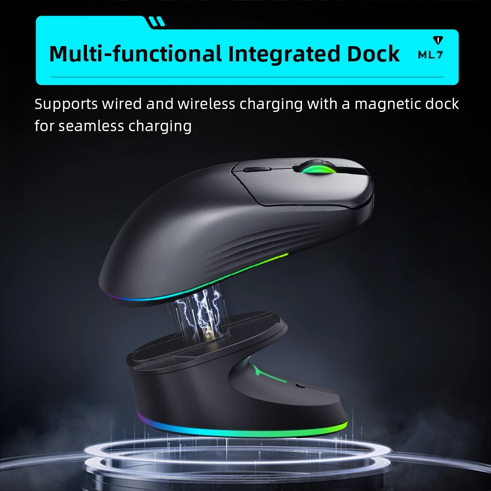 Comprar Ratón inalámbrico Thunderobot ML7, Bluetooth/2,4G/con cable, ratón multimodo PAW3311 RGB, base de carga magnética, ratón para juegos para PC y portátil