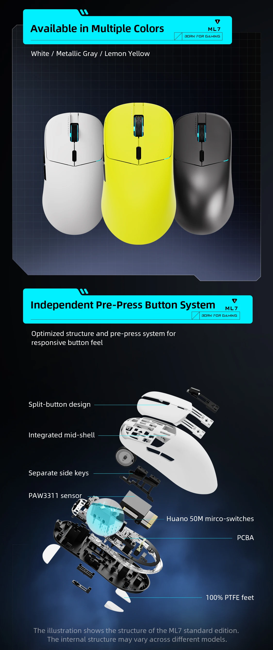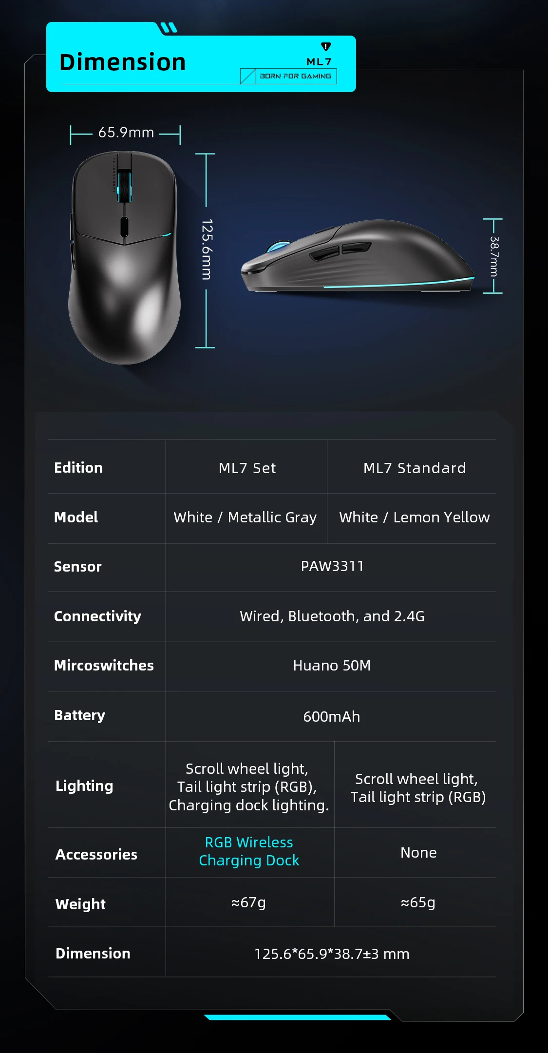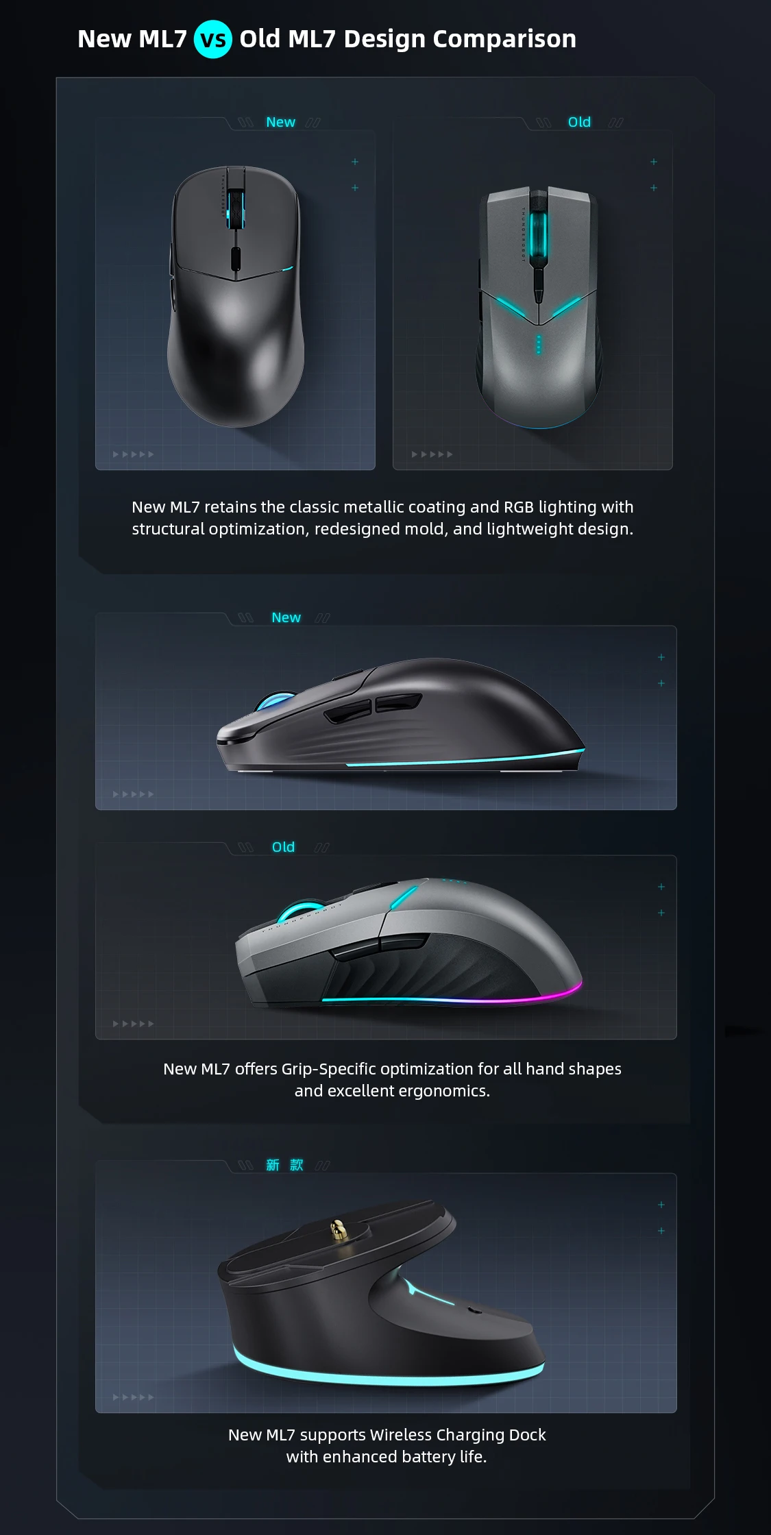 Comprar Ratón inalámbrico Thunderobot ML7, Bluetooth/2,4G/con cable, ratón multimodo PAW3311 RGB, base de carga magnética, ratón para juegos para PC y portátil