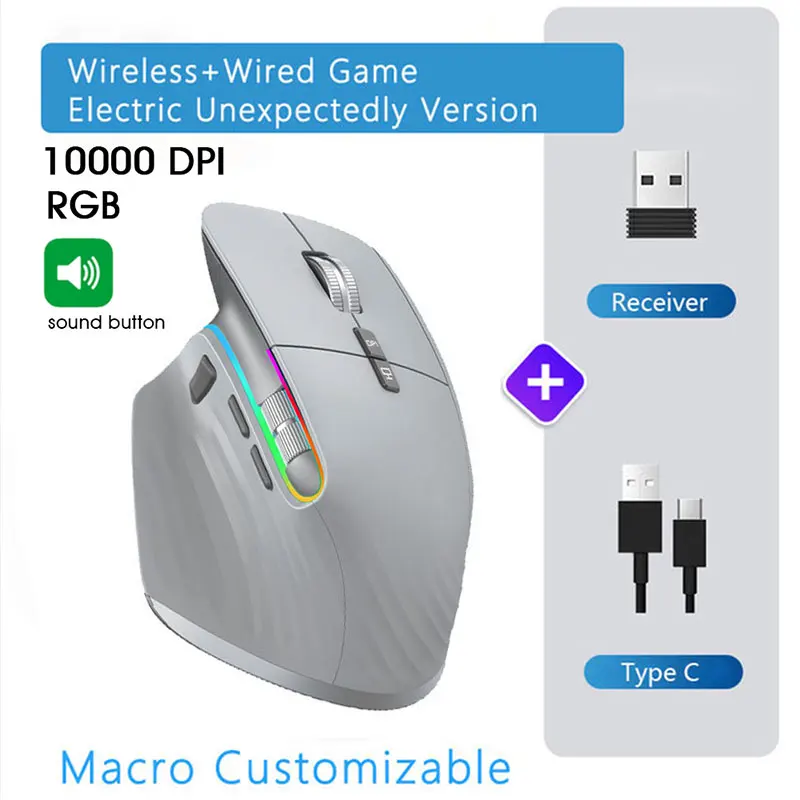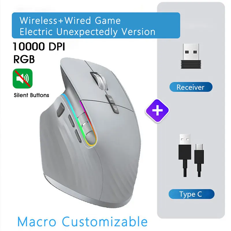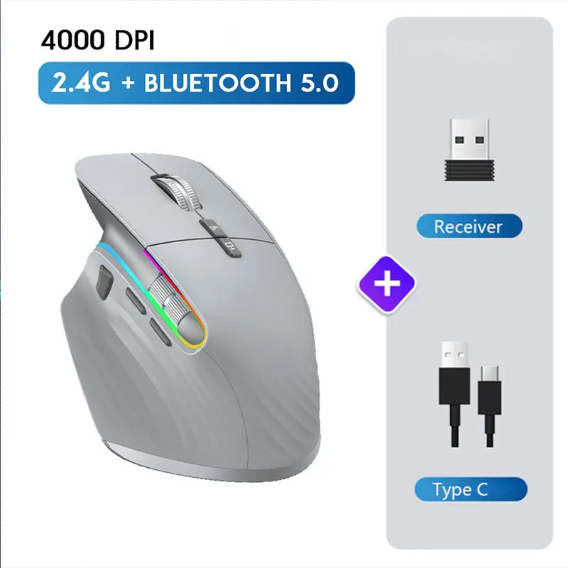 Comprar Ratón inalámbrico tipo C recargable, periférico ergonómico, silencioso, Bluetooth, 5 velocidades, DPI, para tableta, Macbook Air, ordenador portátil, juegos, Oficina
