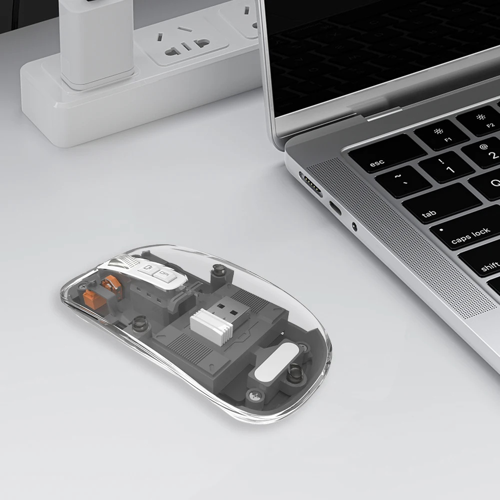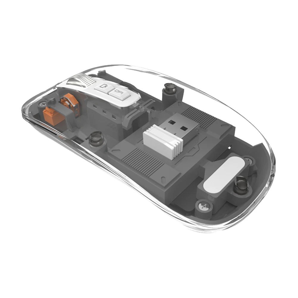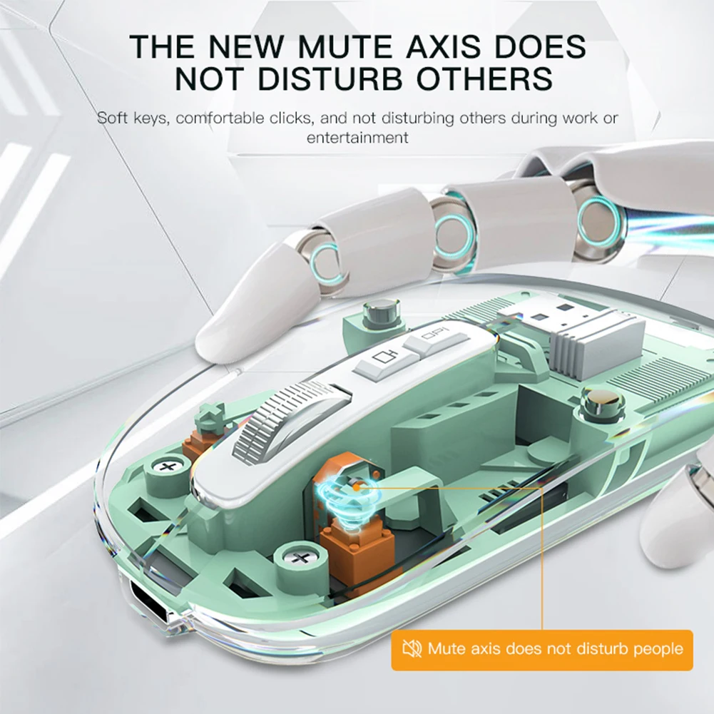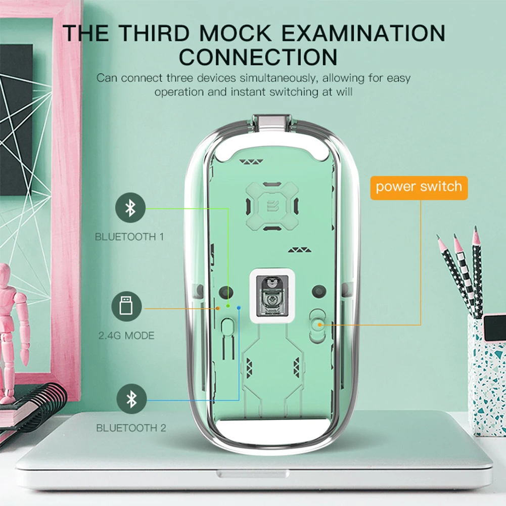 Comprar Ratón inalámbrico transparente con Bluetooth, dispositivo Con 3 modos, Dual BT + 2,4 GHz, 2400DPI, ajustable, pantalla de batería para PC y portátil