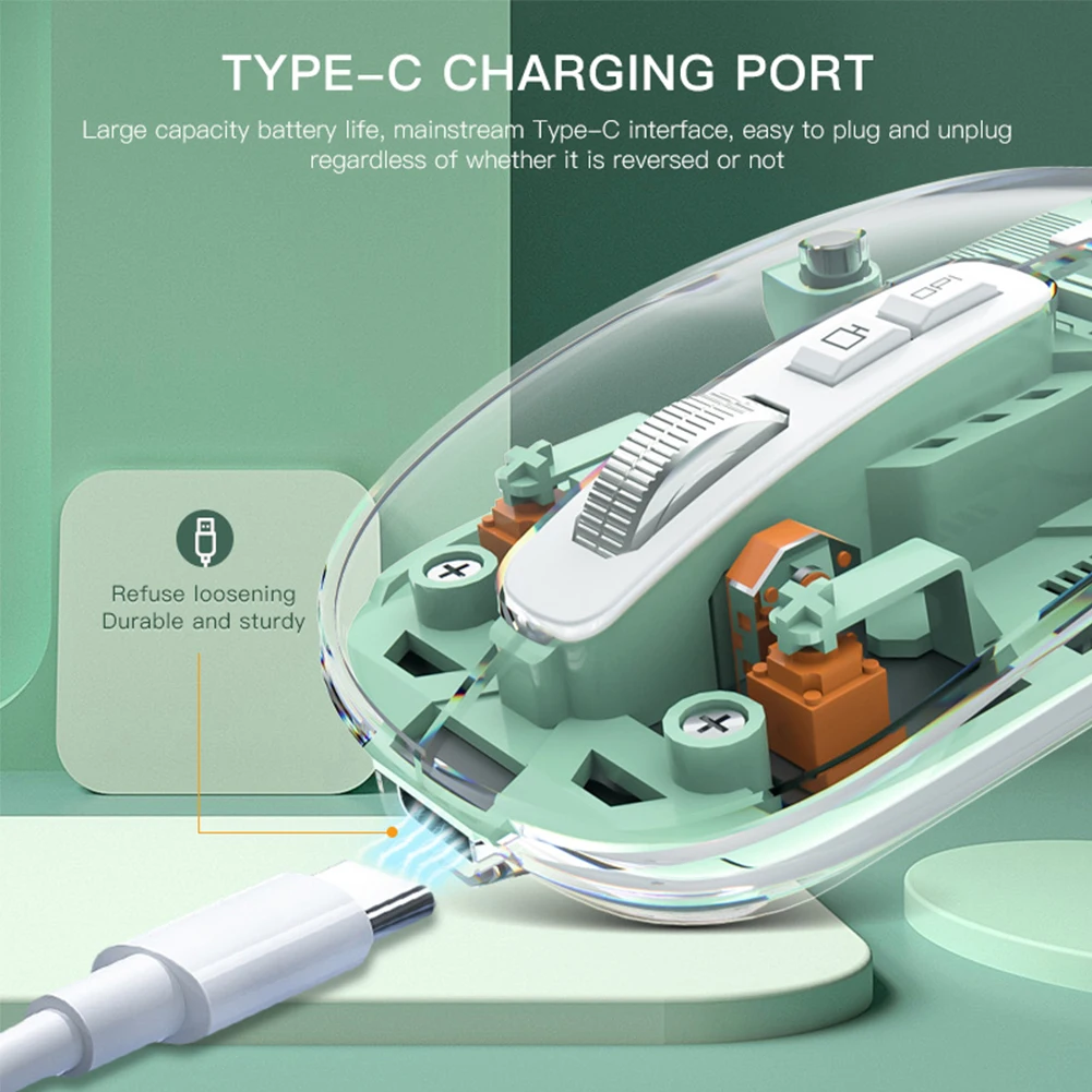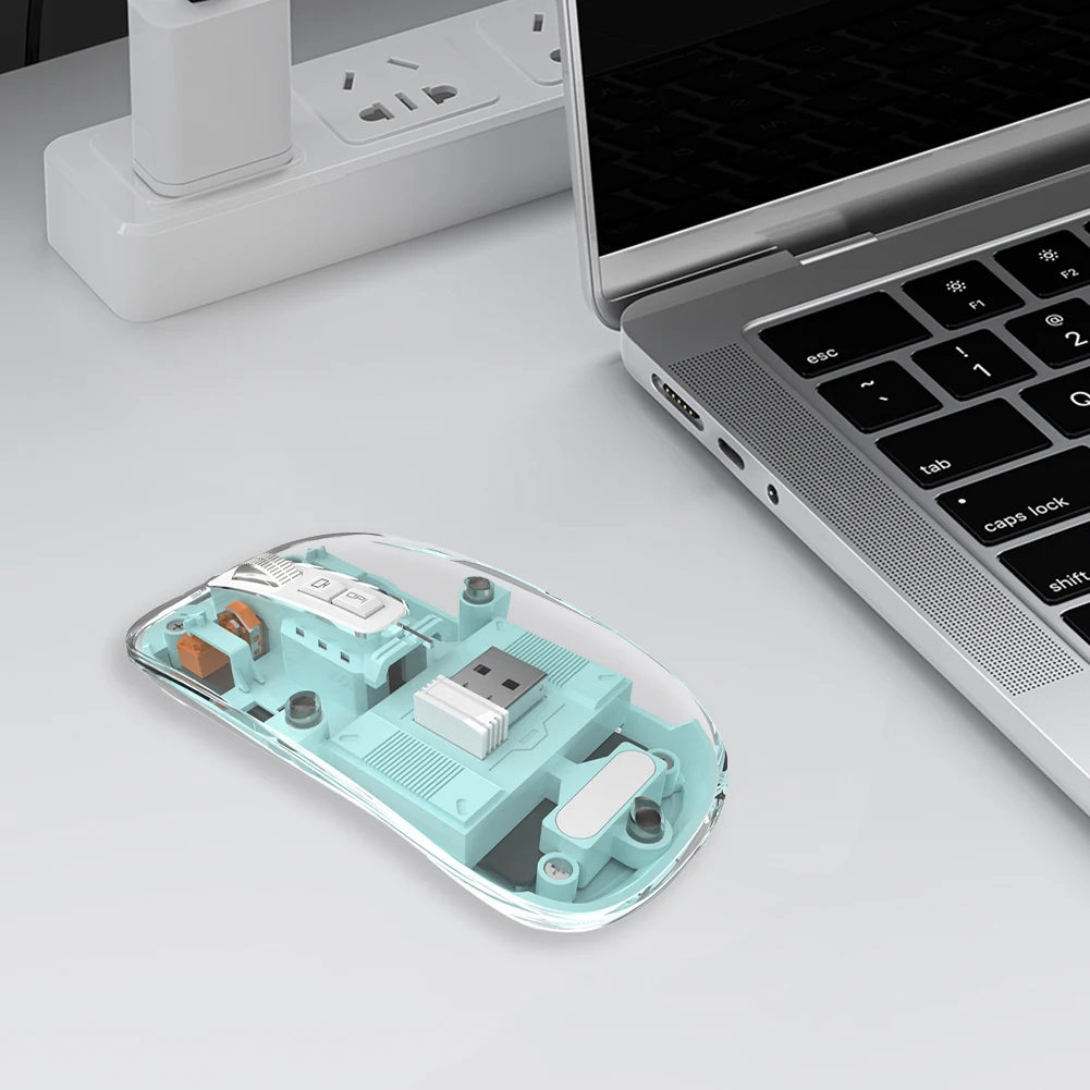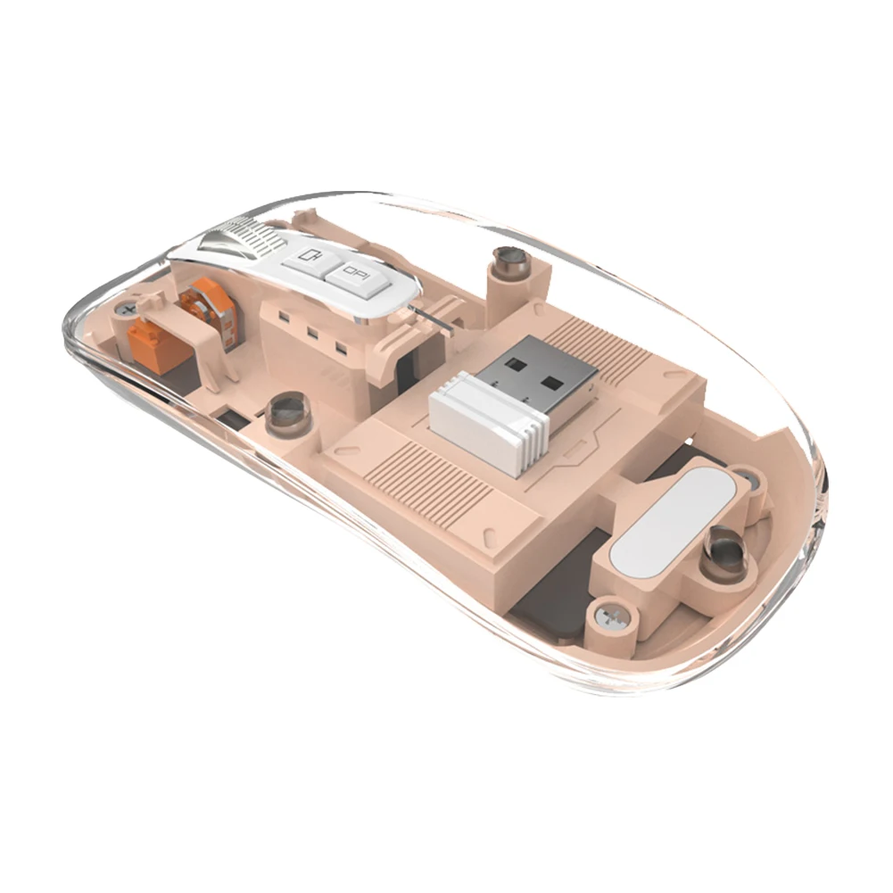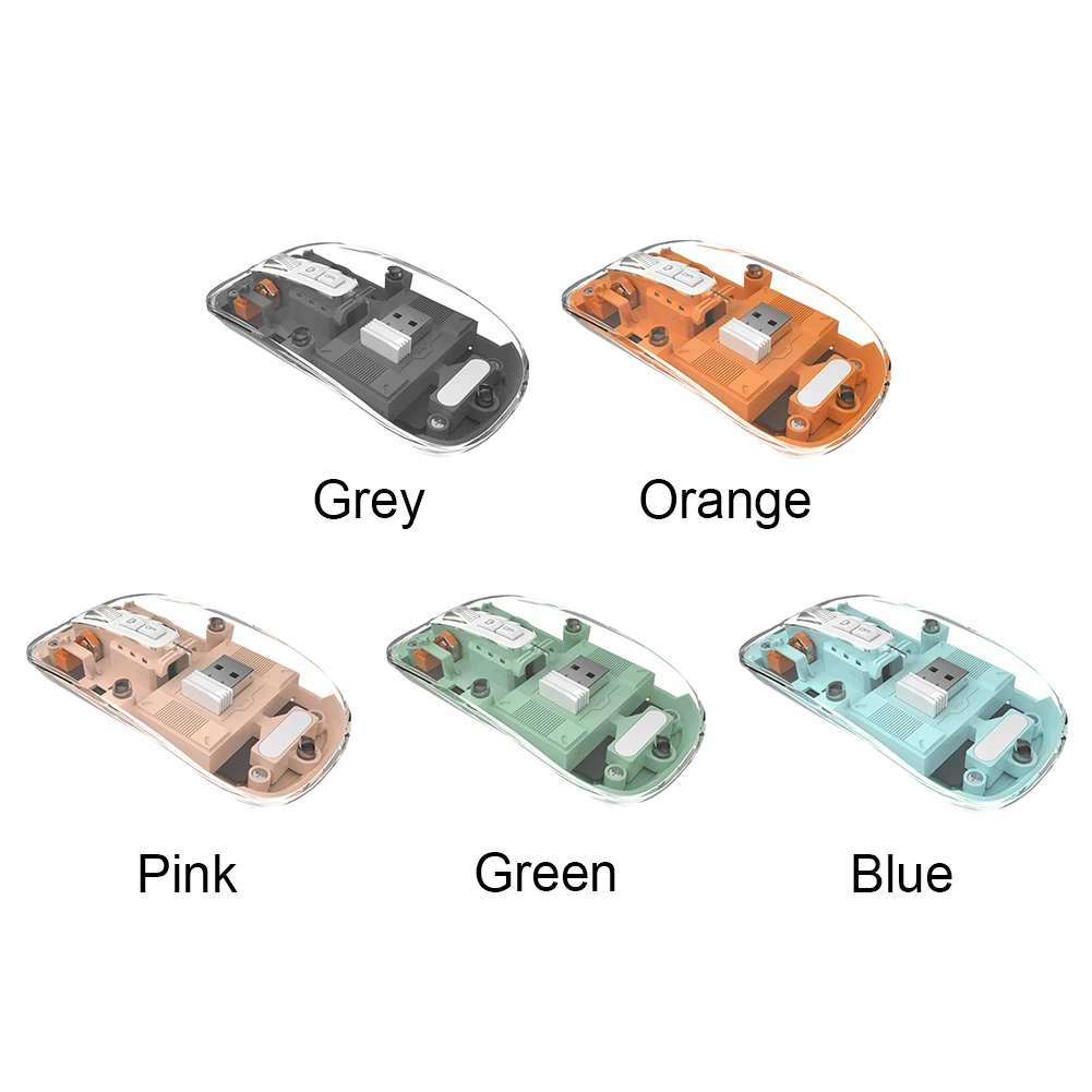 Comprar Ratón inalámbrico transparente con Bluetooth, dispositivo Con 3 modos, Dual BT + 2,4 GHz, 2400DPI, ajustable, pantalla de batería para PC y portátil