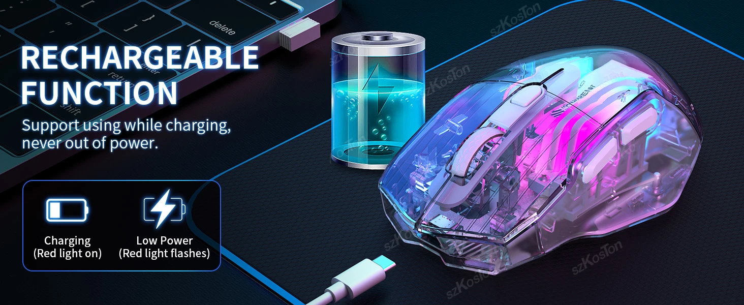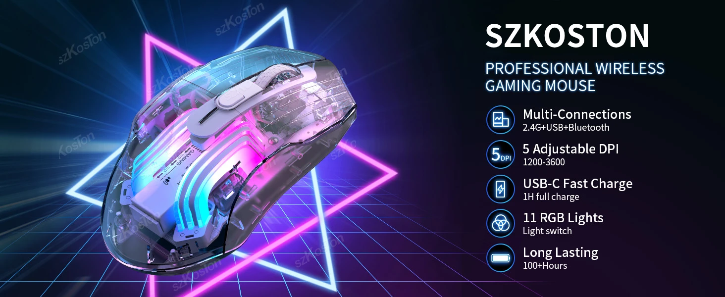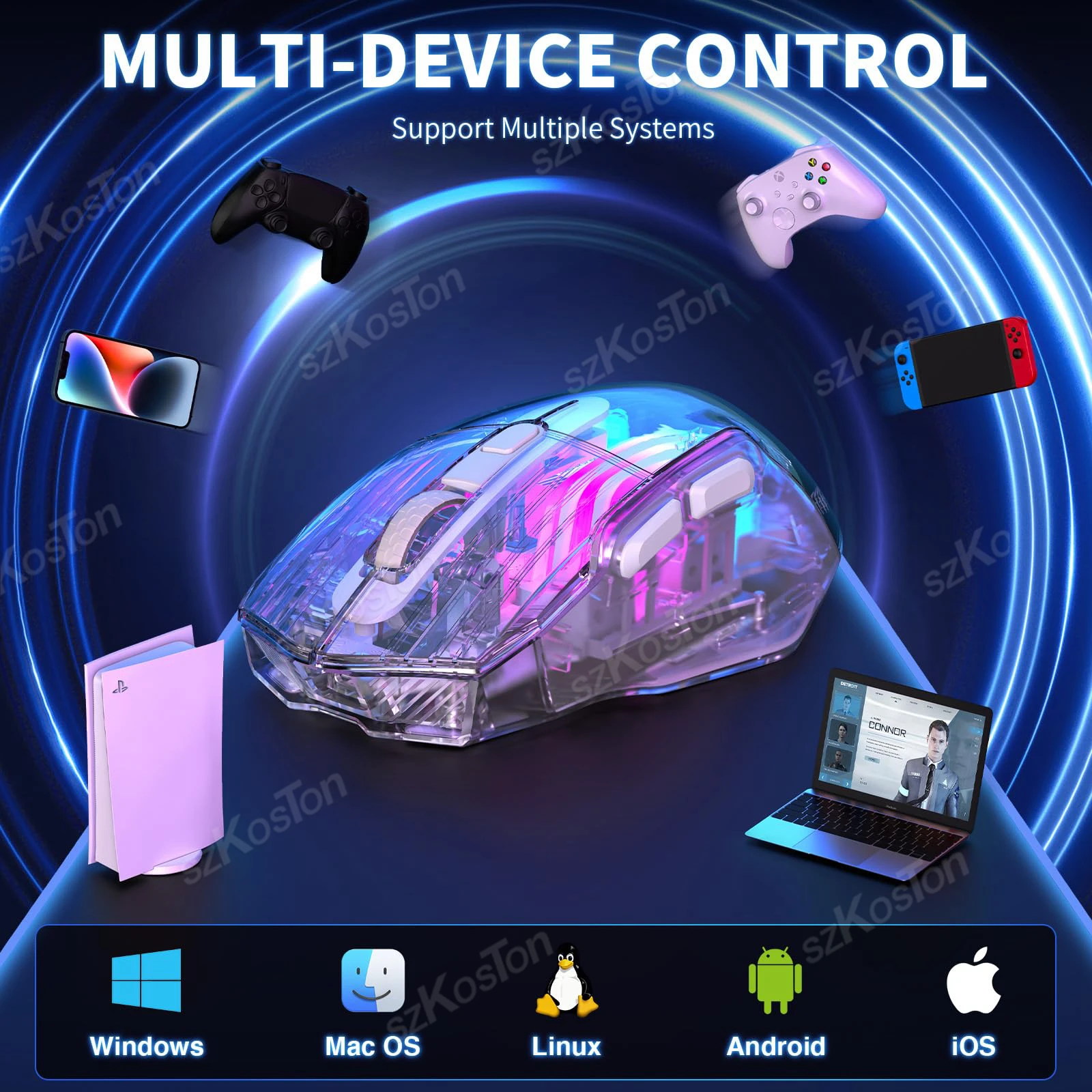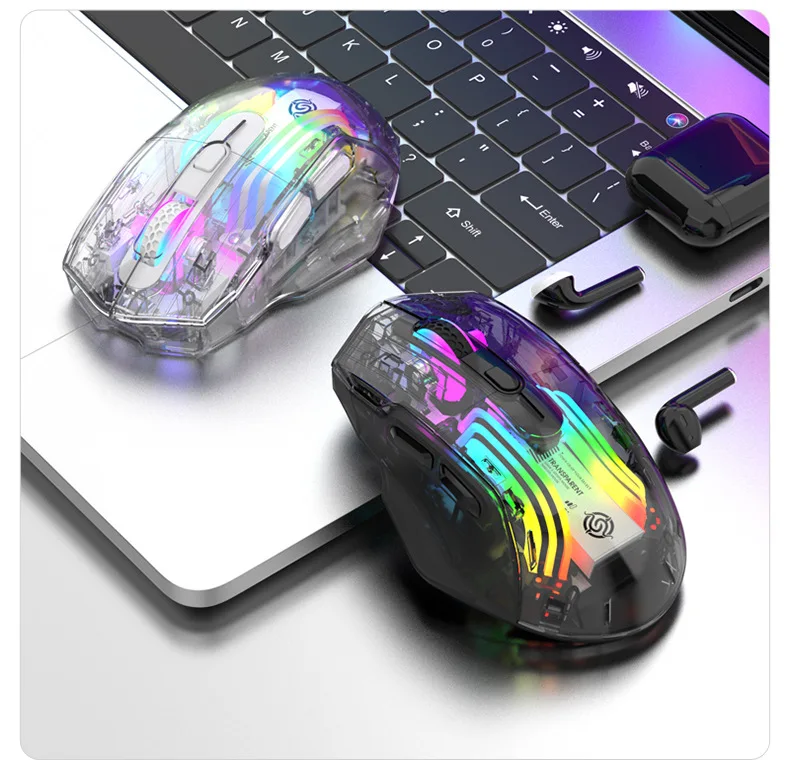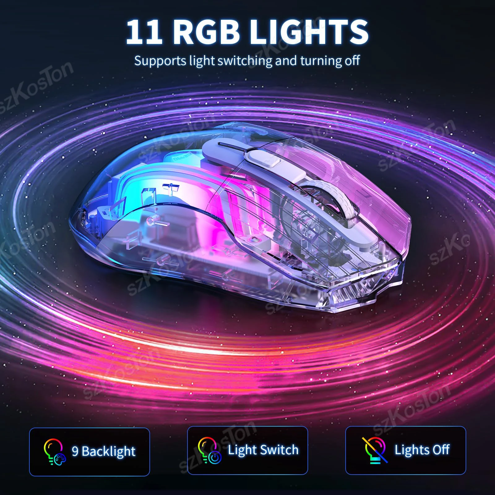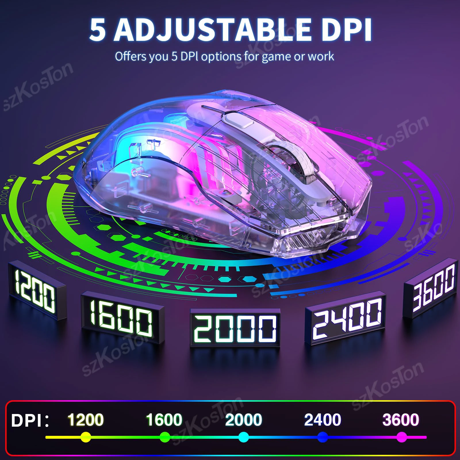Comprar Ratón inalámbrico transparente para juegos, 2,4G/USB-C/Bluetooth, con 5 niveles de DPI, recargable, para ordenador portátil, PC y Mac