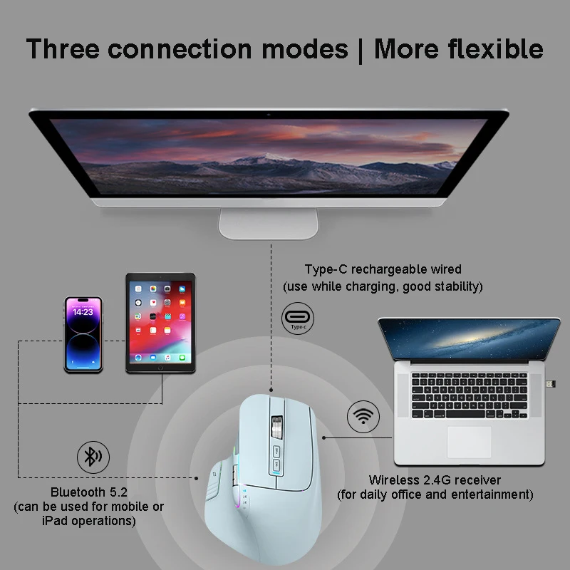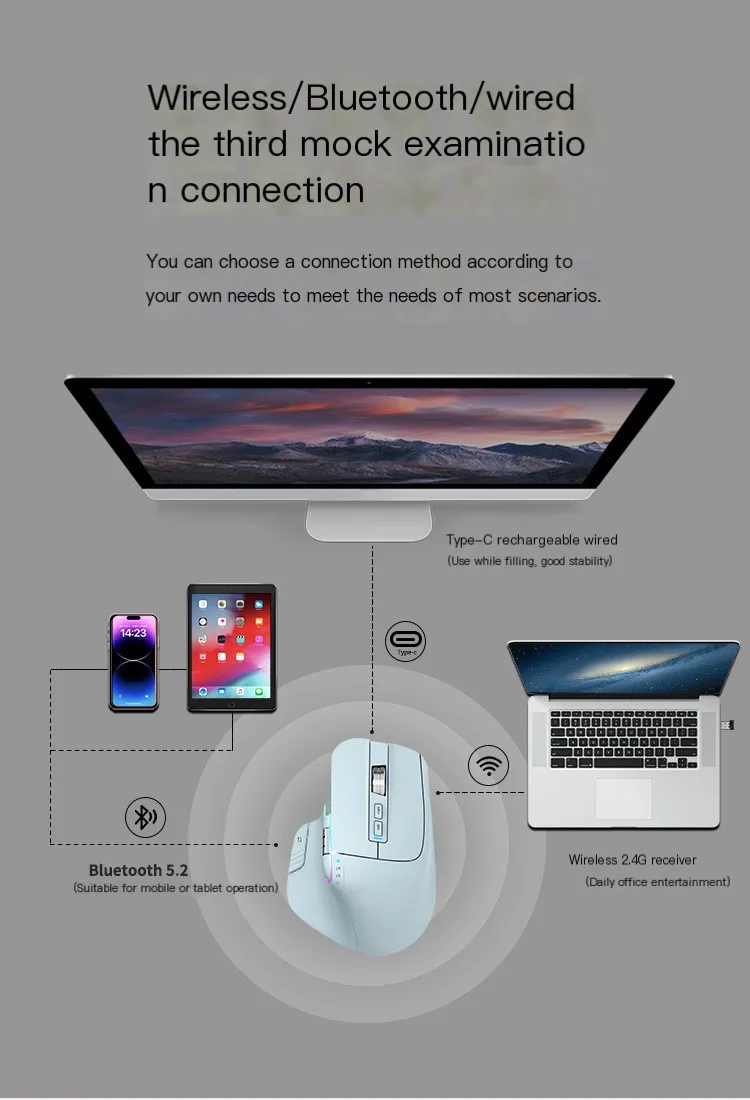 Ratón inalámbrico de tres modos Bluetooth 2,4G ratones de definición macro ergonómico para juegos recargable Mause para ordenador portátil PC Notebook teléfono