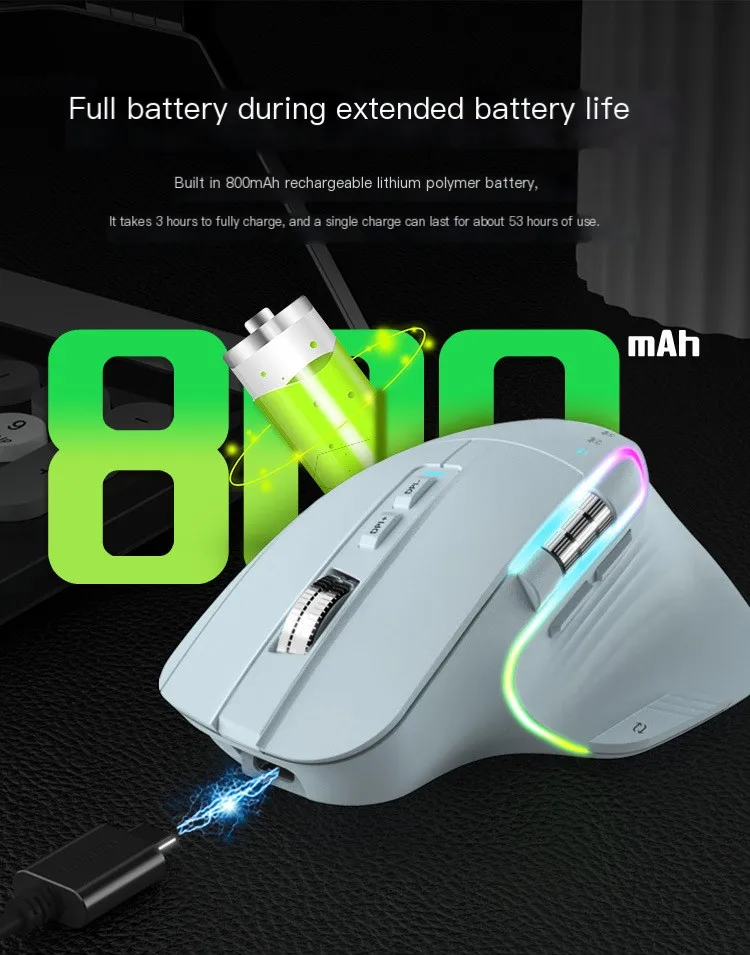 Comprar Ratón inalámbrico trimodal con Bluetooth, 2,4G, definición Macro, ergonómico, recargable, para ordenador portátil, PC, Notebook y teléfono