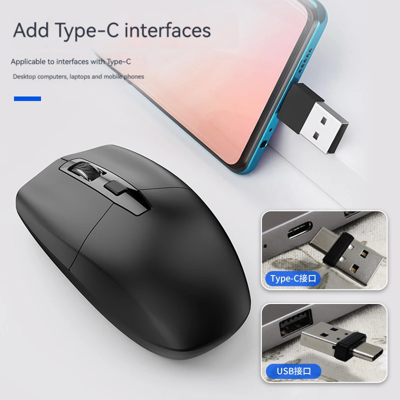Comprar Ratón inalámbrico USB tipo C, receptor óptico ergonómico, 2,4G, 2 en 1, para ordenador portátil, tableta y Pc