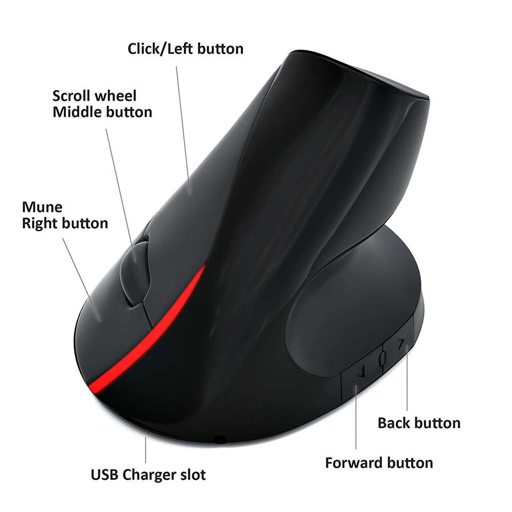 4.Botones que aumentan la eficiencia:El mouse vertical incluye seis botones, como teclas de avance y retroceso, para acelerar la navegación web.Su rueda de desplazamiento antideslizante mejora el control, haciéndola perfecta para trabajos intensivos.
