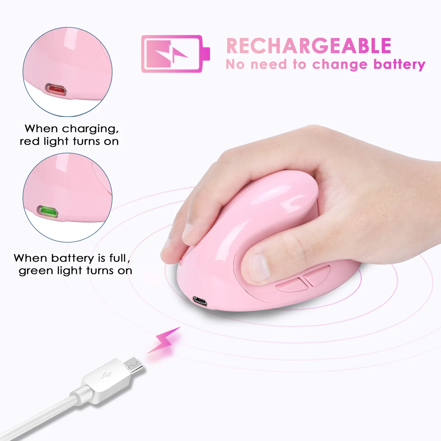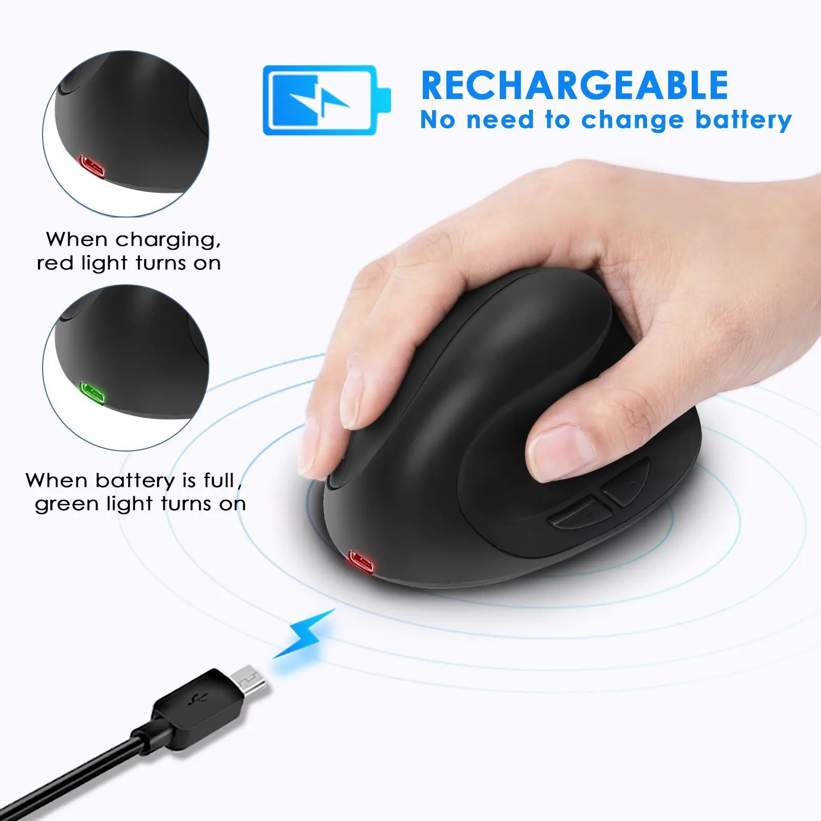 Comprar Ratón inalámbrico Vertical de 2,4 GHz, 1600 DPI, ajustable, silencioso, diseño ergonómico, agarre cómodo, recargable, uso en PC de oficina
