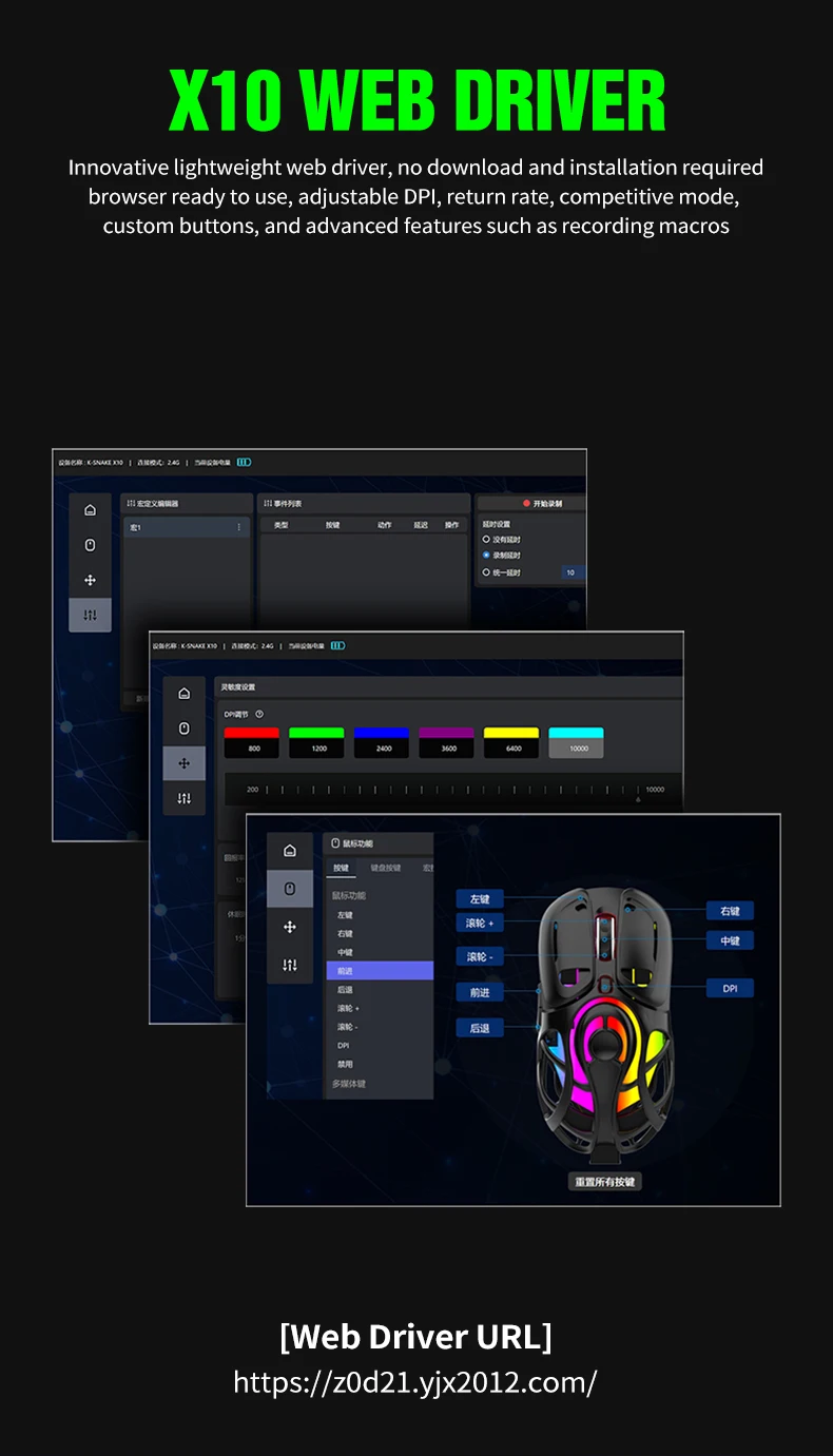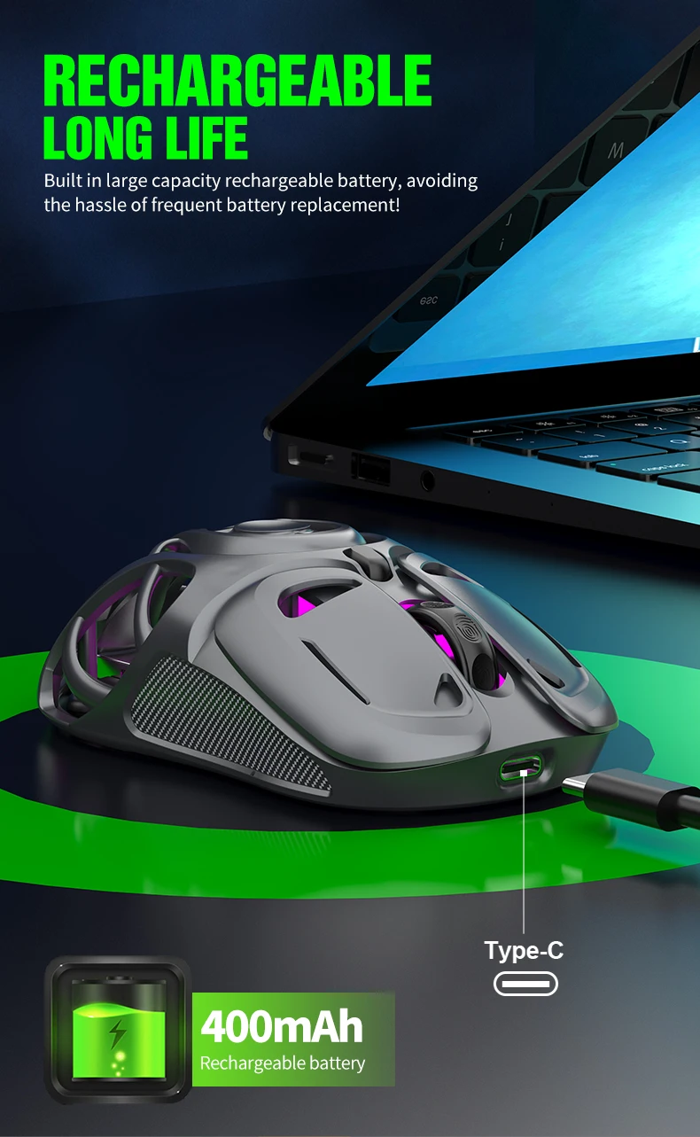Ratón de juego liviano de tres modos: 2,4G+BT+con cable
