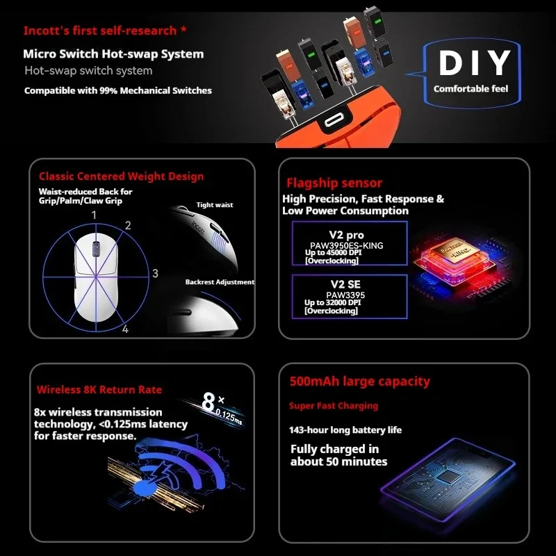 Comprar Ratón Incott G23 V2 Se/Pro, intercambio en caliente, inalámbrico, 8k, ergonómico, juego de deportes electrónicos, accesorios personalizados para PC, regalos