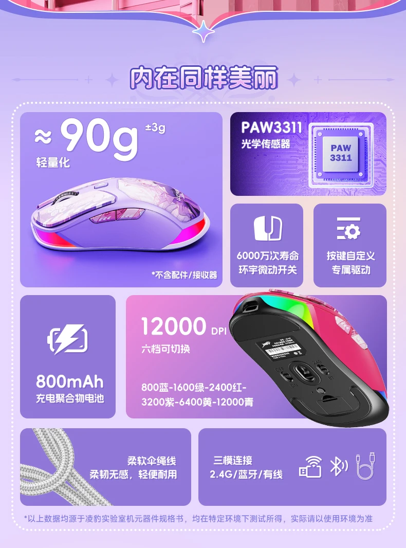 2.Sensor de alto rendimiento: Equipado con sensor óptico PAW3311, posicionamiento preciso y respuesta rápida.