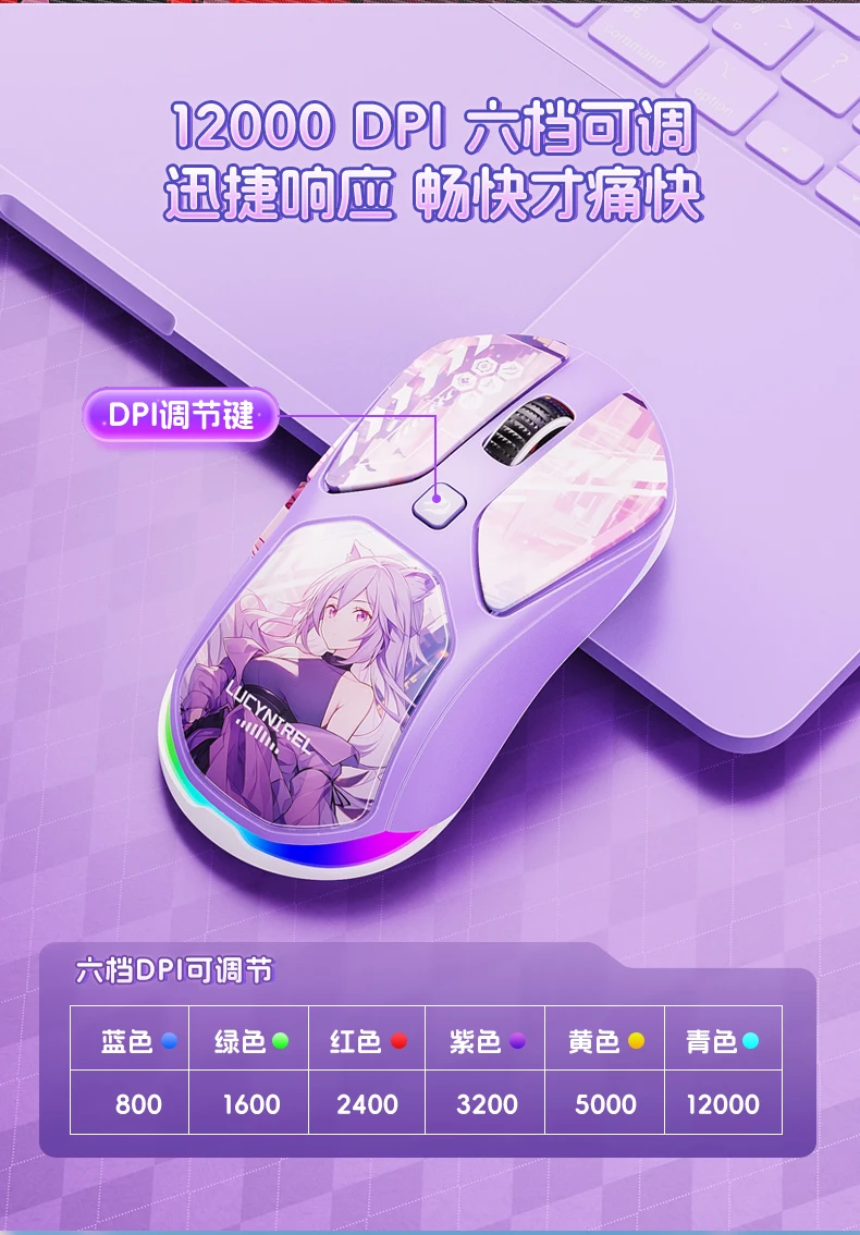 4.Alto DPI y ajustable: se pueden cambiar seis niveles de 12000 DPI para satisfacer diferentes escenarios de uso.