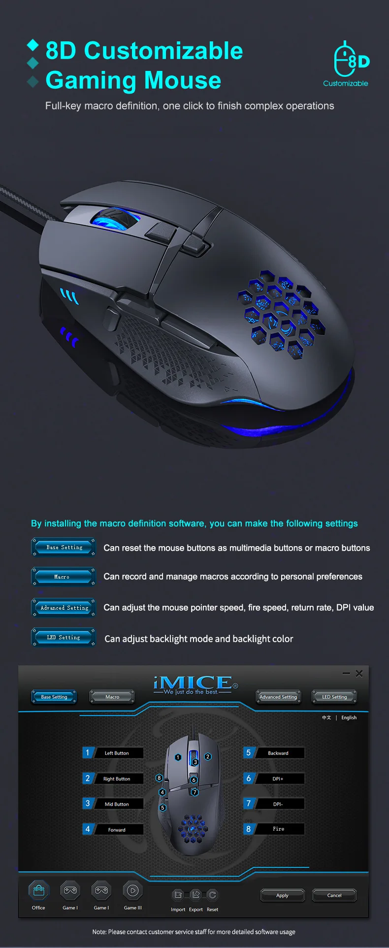 Configuración de DPI ajustable: 800/1200/2400/3200/6400/7200 DPI, hasta 7200DPI mediante el software.