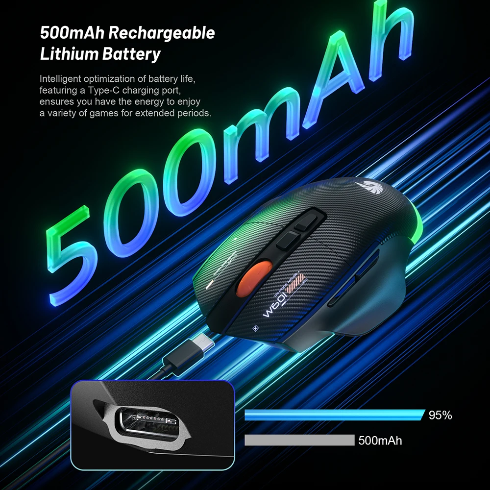 Comprar Ratón para juegos Chatreey, 12800DPI, 1000Hz, BT/2,4G/inalámbrico, 7 botones, Macro Mouse para deportes electrónicos, diseño ergonómico, retroiluminado RGB