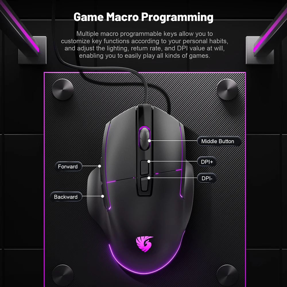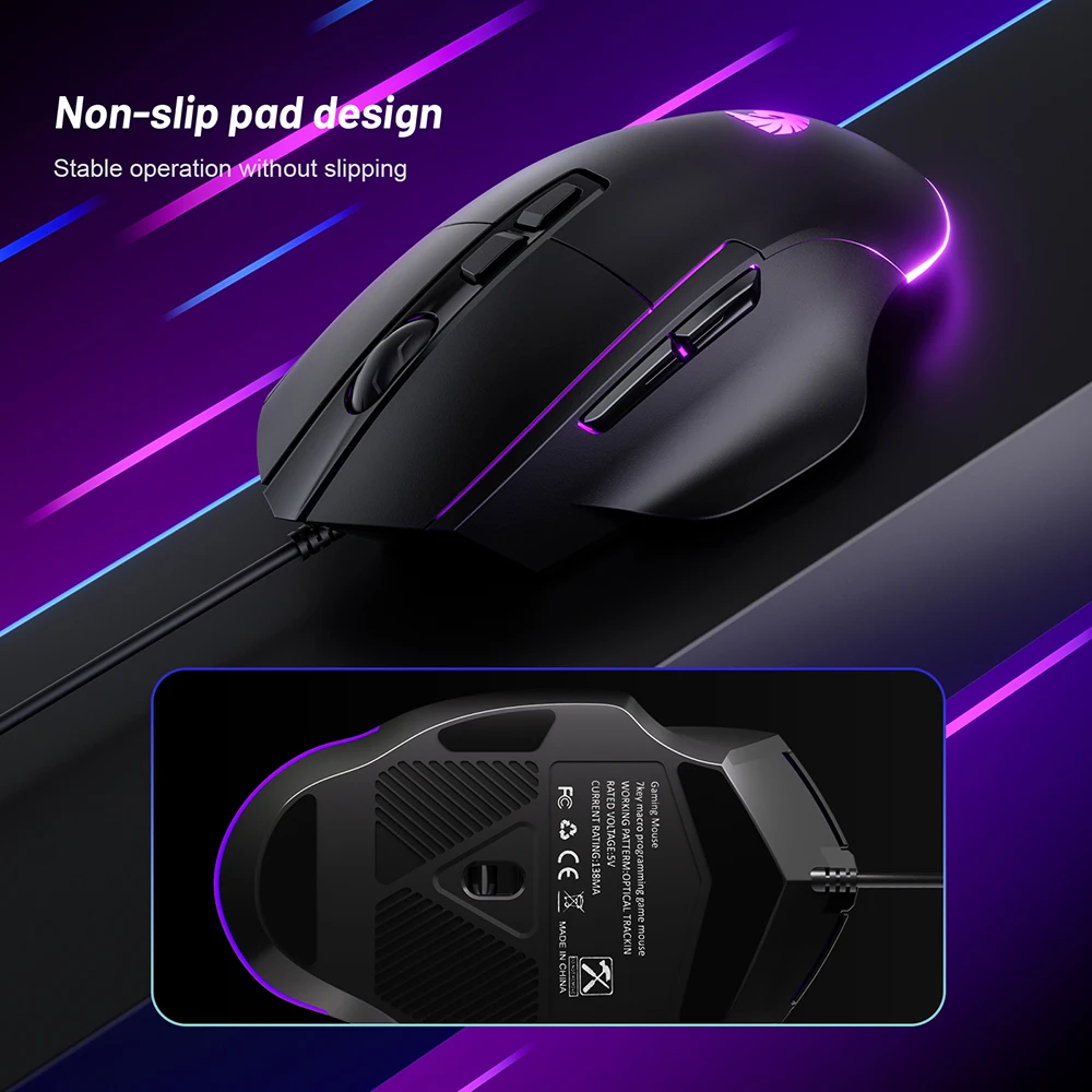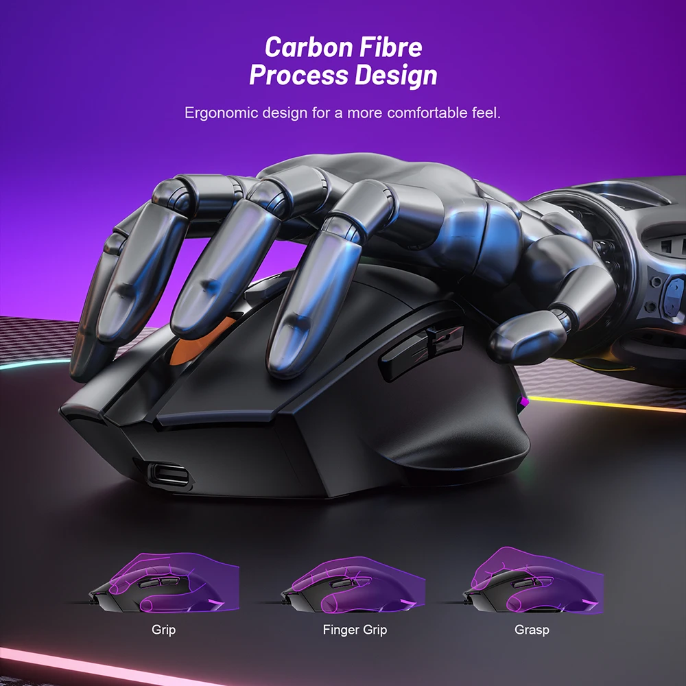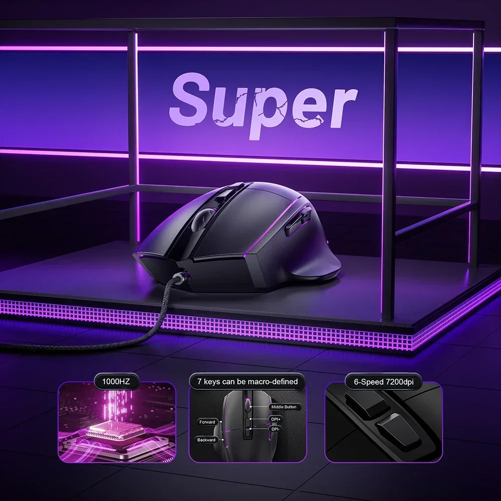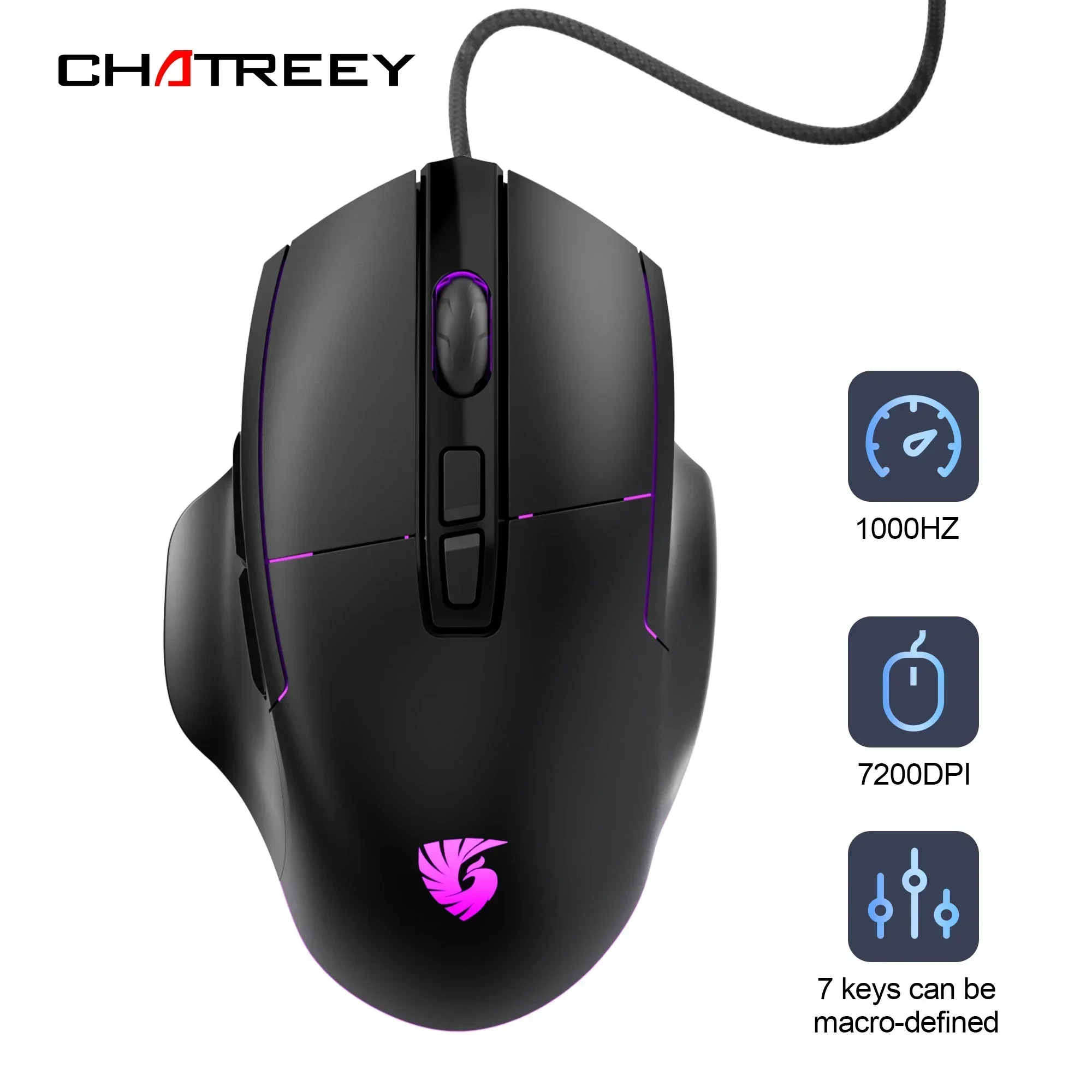 Comprar Ratón para juegos Chatreey, 7200DPI, 1000Hz, inalámbrico, 7 botones, Macro Mouse para deportes electrónicos, diseño ergonómico, retroiluminado RGB