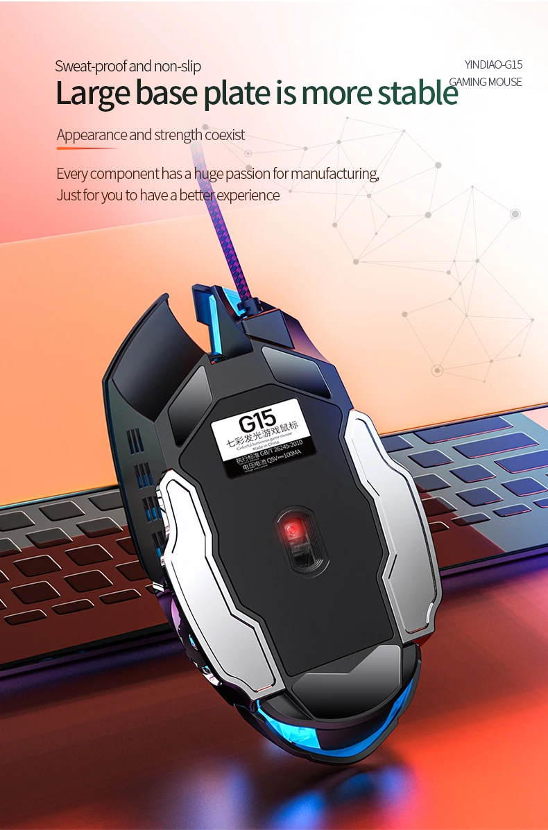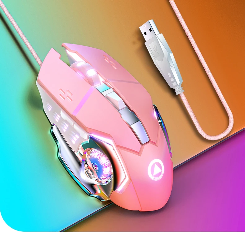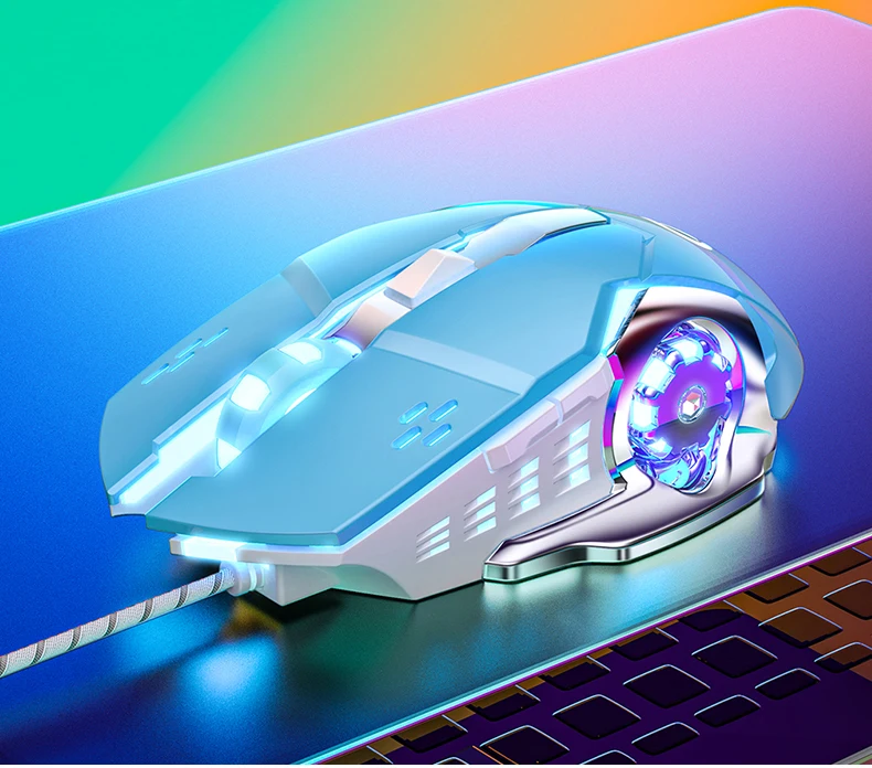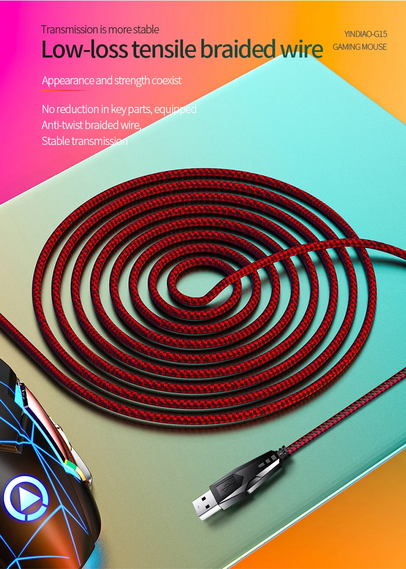 Comprar Ratón para juegos por cable, Cable USB trenzado RGB de 3600 DPI, ratón silencioso de 6 botones para PC, portátiles, periférico de ordenador, jugadores de deportes electrónicos