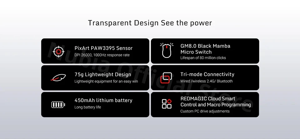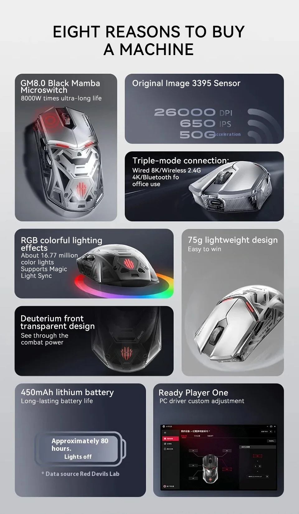 Comprar Ratón para juegos Redmagic Original 1S Super Edition GM8.0 RGB Light 3395 sensores PC ordenador portátil ratón 75g diseño de peso