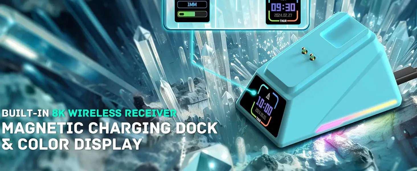 AJAZZ AJ159APEX 8K ratón ultraligero para juegos con pantalla magnética RGB Base de carga Sensor PAW3950 30K DPI 2,4G/BT/cable Tri-modo