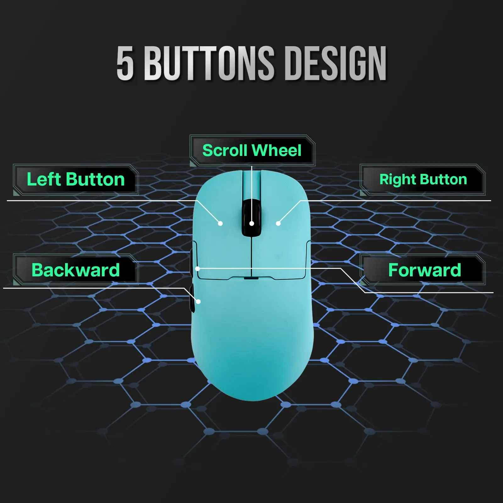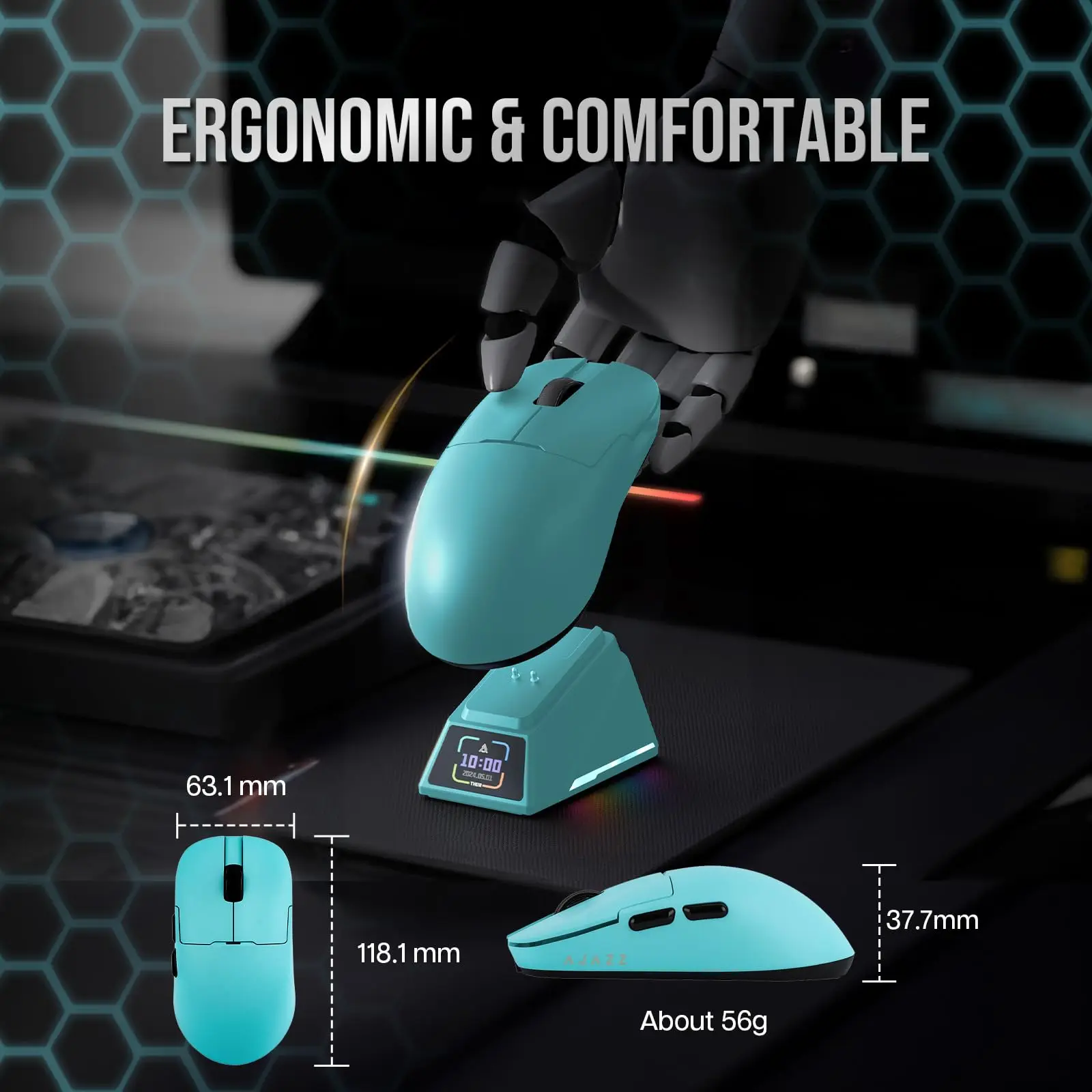 【Diseño cómodo ultraligero de 56G】La carcasa del mouse para juegos 8K adopta un cómodo proceso de recubrimiento con sensación de hielo, que es muy amigable para quienes les gustan los jugadores de maratón y las palmas sudorosas.Al mismo tiempo, adopta una estructura de agarre cuidadosamente diseñada, el mouse Bluetooth pesa solo 56 ± 3 g, la estructura es duradera y se mueve con mayor rapidez y precisión.