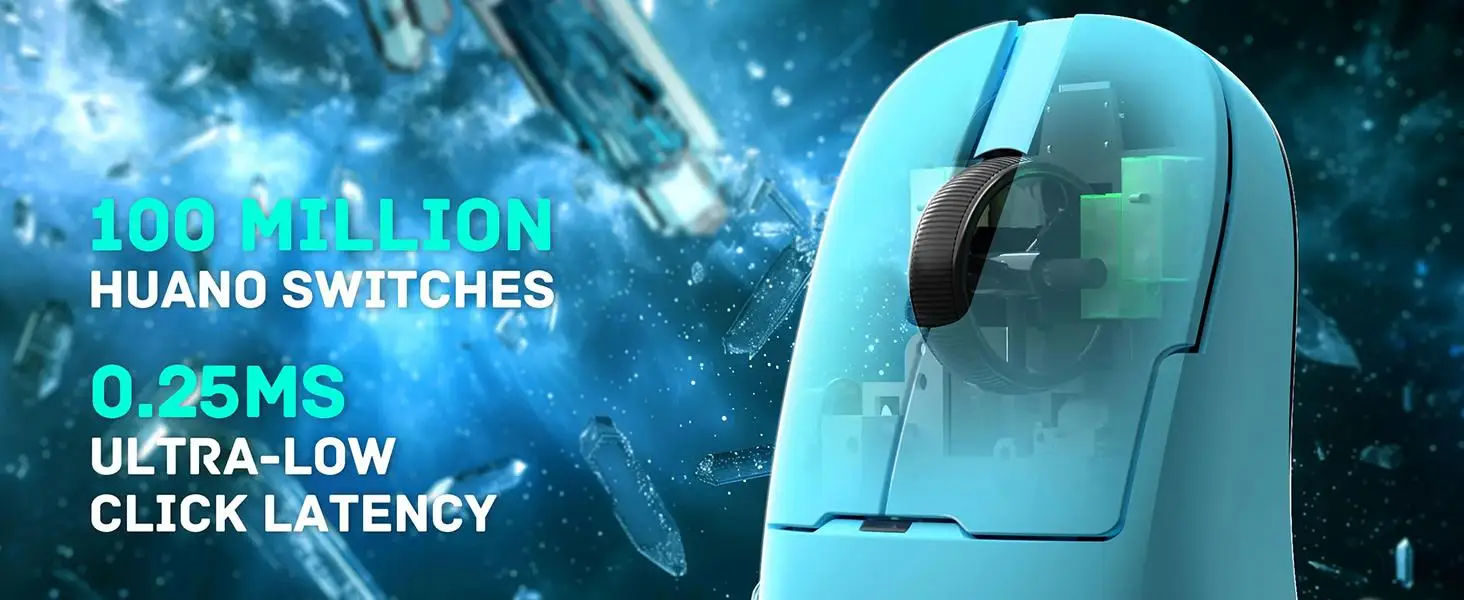 【Más de 100 millones de clics y almohadillas para pies ETFE】Precisión ultrarrápida con configuración de microinterruptor de punto blanco translúcido verde Huanuo, sensación de clic nítida y clara que mejora el control del juego, cada botón supera 100 millones de pruebas de clic;Para mejorar la resistencia al desgaste y la estabilidad, la parte inferior utiliza almohadillas de teflón puro para garantizar un movimiento más rápido y un mejor control en juegos intensos.