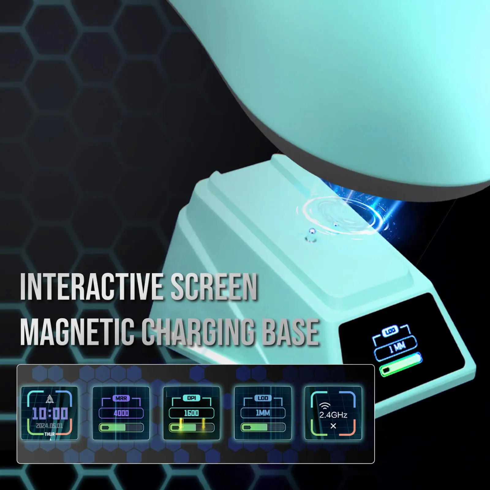 【Pase de carga de pantalla colorida magnética】El mouse óptico profesional se combina con una innovadora base de carga de pantalla magnética RGB.La pantalla colorida única le permite consultar más rápidamente el modo de conexión del mouse, DPI, LOD, patrones GIF personalizados, etc.La base de carga magnética le brinda verdadera libertad de carga y está equipada con iluminación RGB ajustable para hacer que el escritorio sea colorido y agregar una atmósfera fresca.