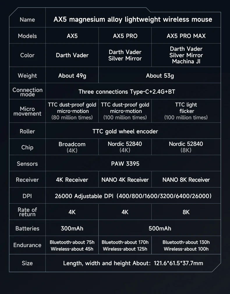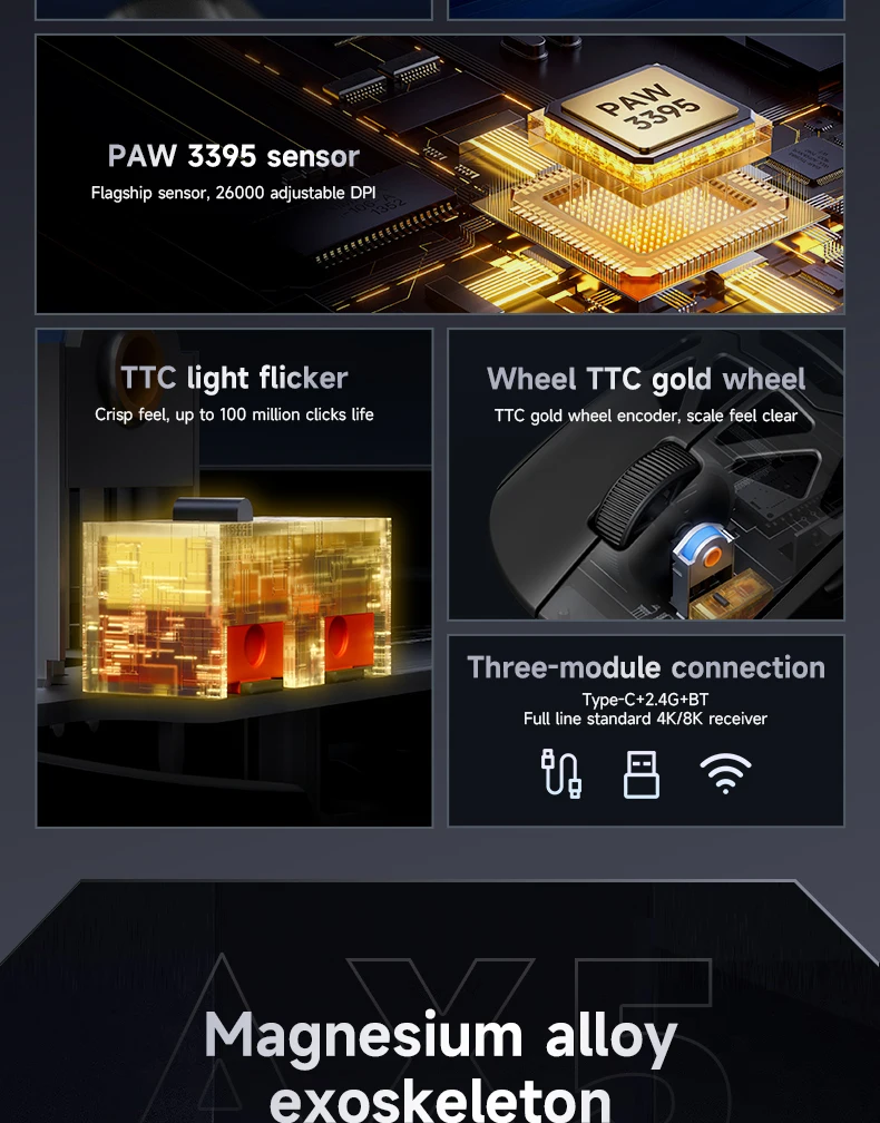 Attack Shark X MCHOSE AX5 ratón ligero inalámbrico de aleación de magnesio Sensor Paw3395 accesorios de ratón para juegos con cable de baja latencia