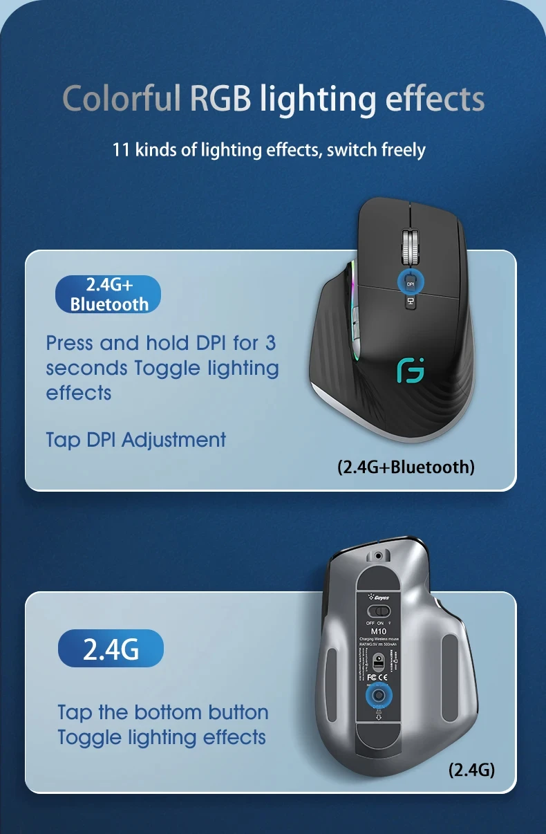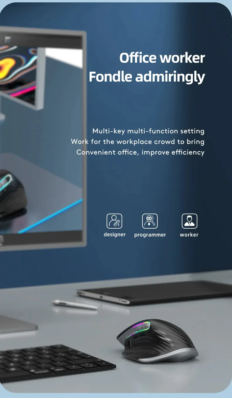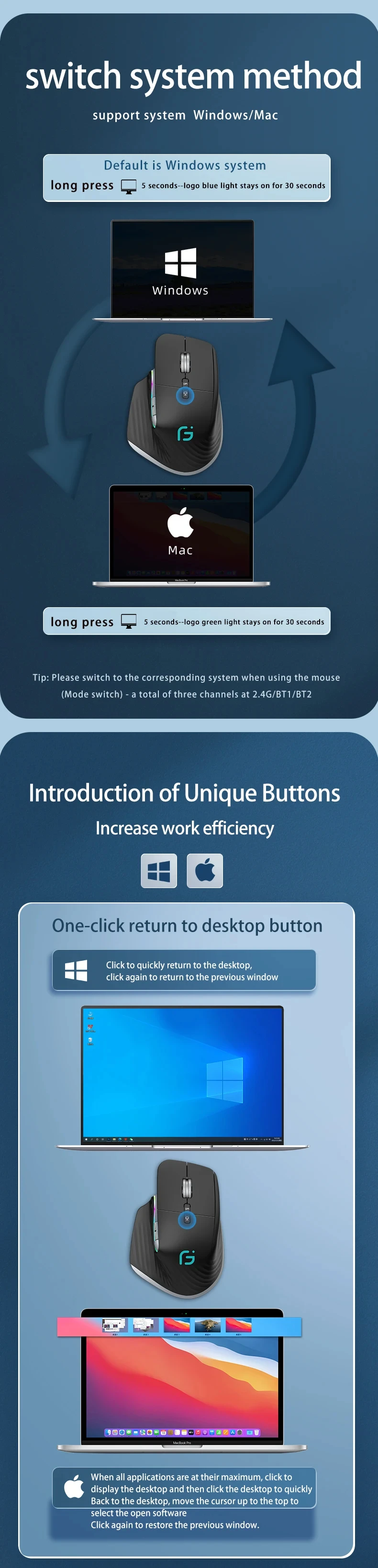Modo triple:Ratón inalámbrico 2,4G y ratón Buletooth