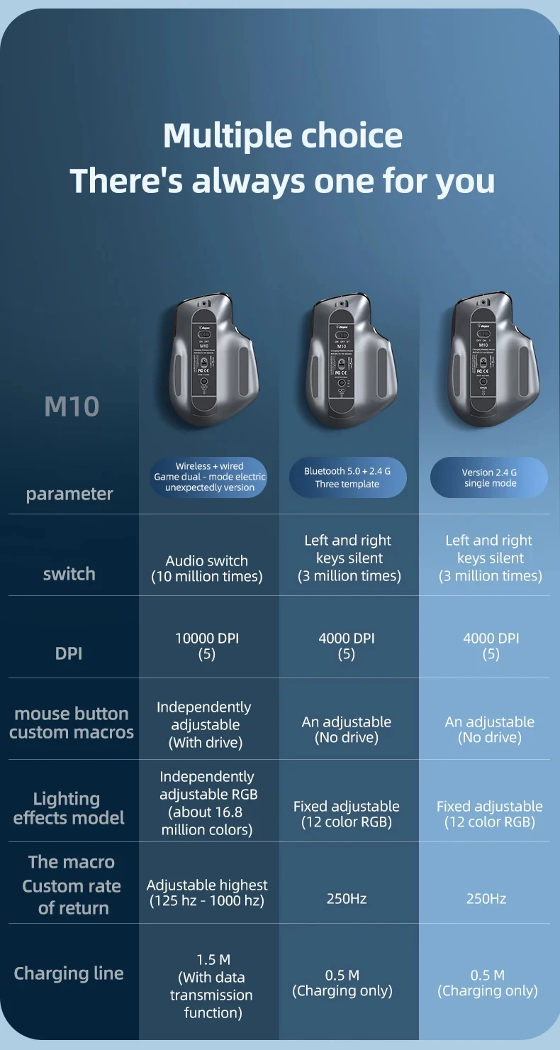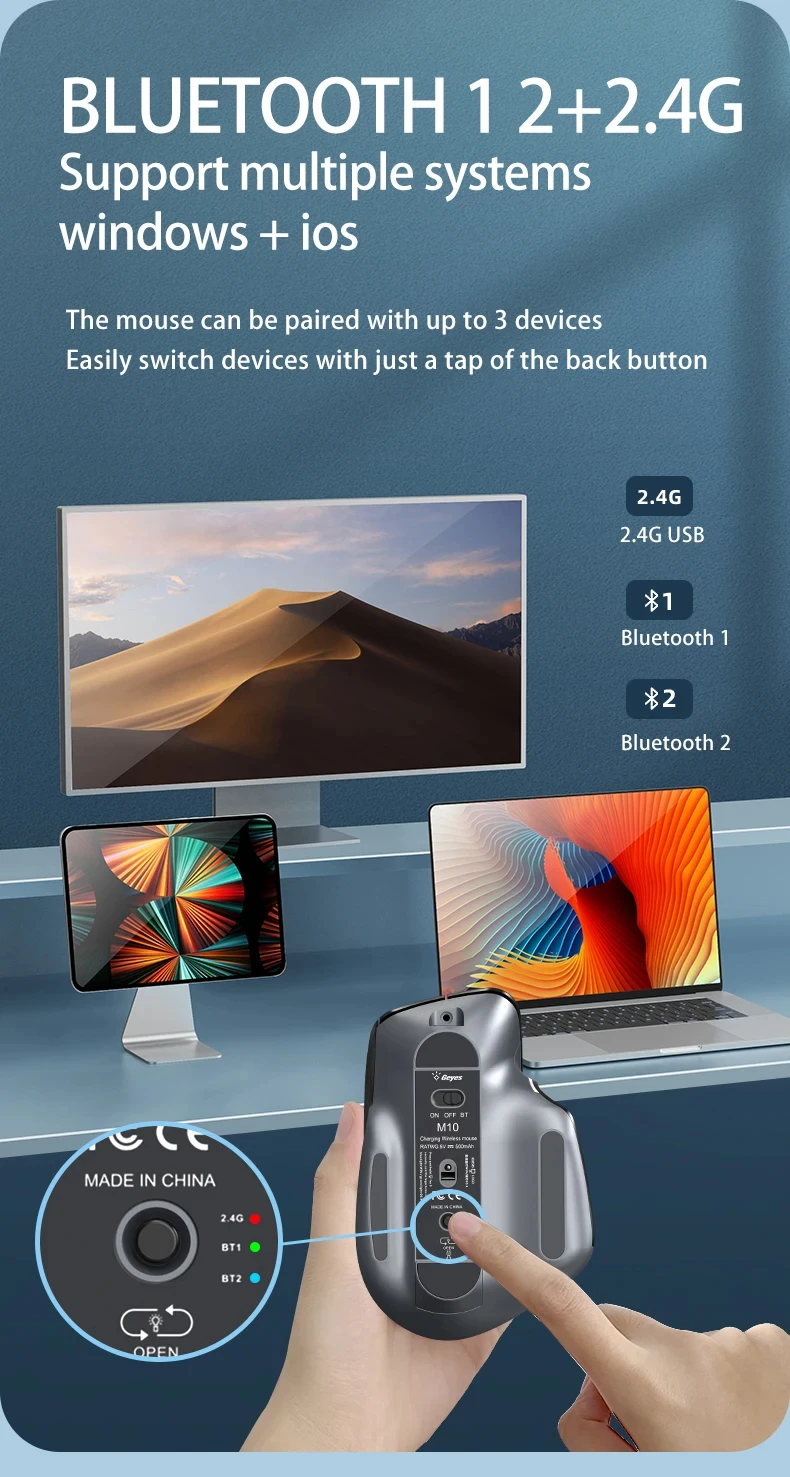 Comprar Ratón M10 2,4G Bluetooth de tres modos, Macro inalámbrico Vertical programable, botón de silencio, ratón ergonómico de 4000 DPI para ordenador portátil y PC