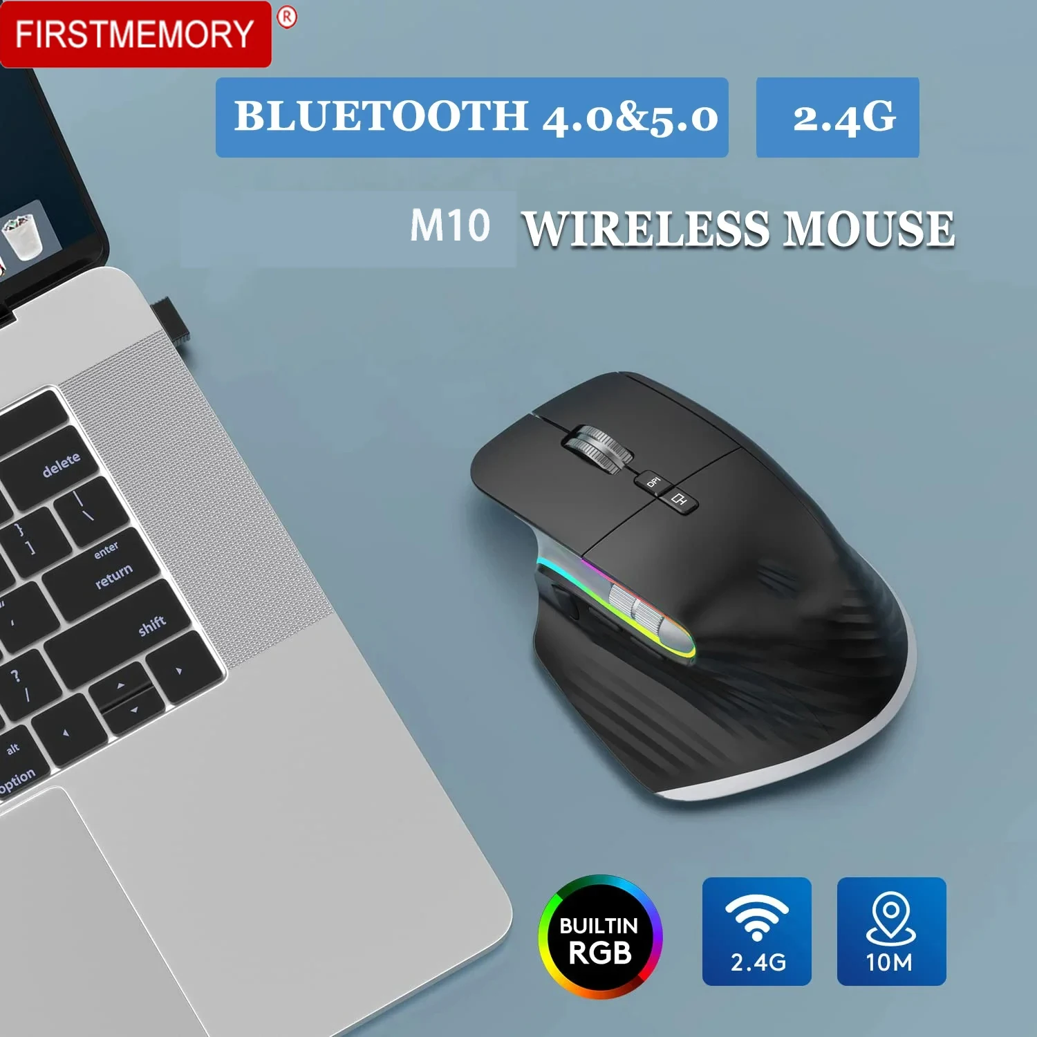 Comprar Ratón M10 2,4G Bluetooth de tres modos, Macro inalámbrico Vertical programable, botón de silencio, ratón ergonómico de 4000 DPI para ordenador portátil y PC