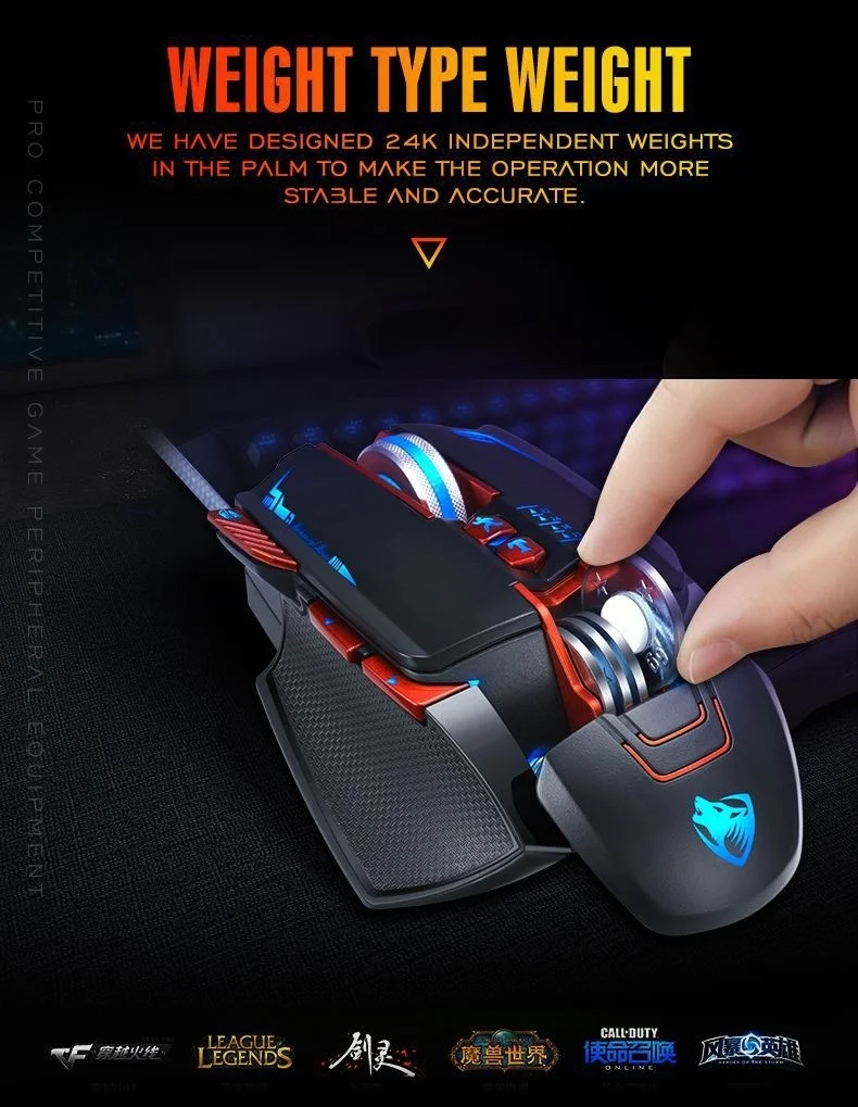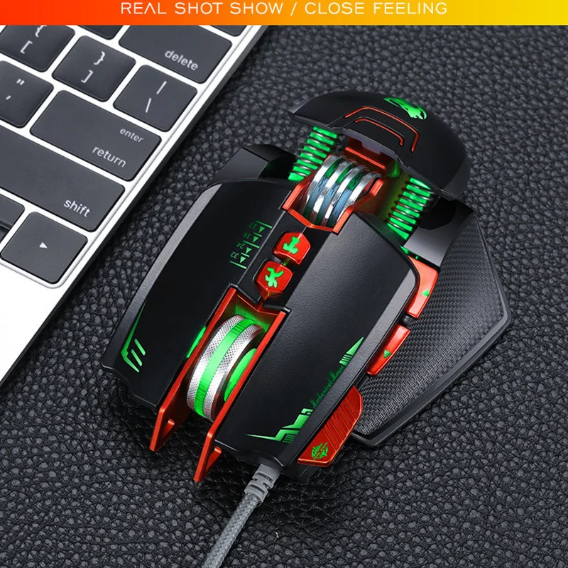 Comprar Ratón mecánico para juegos de 6400 DPI, dispositivo óptico con cable USB, 8 botones, programación Macro, para PC, ordenador portátil