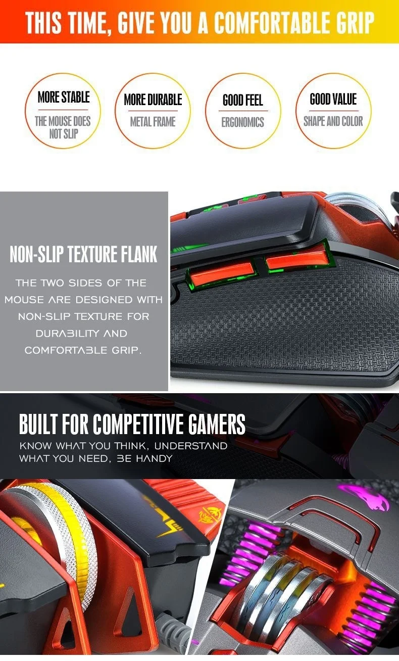 1.(RATÓN PARA JUEGOS CON CABLE): diseñado para ordenadores de juegos: ratón ergonómico RGB retroiluminado para juegos de PC hasta 3200 DPI (ajustable por el usuario 1200-1800-2400-3200DPI), el sensor de alta precisión ofrece precisión milimétrica, mientras que los microinterruptores de grado de juego garantizan longevidad, mayor durabilidad y capacidad de respuesta extrema, lo que le brinda una ventaja aún mayor sobre su competencia