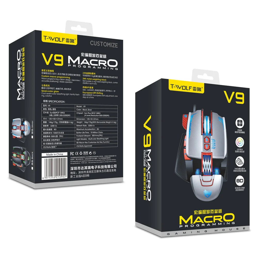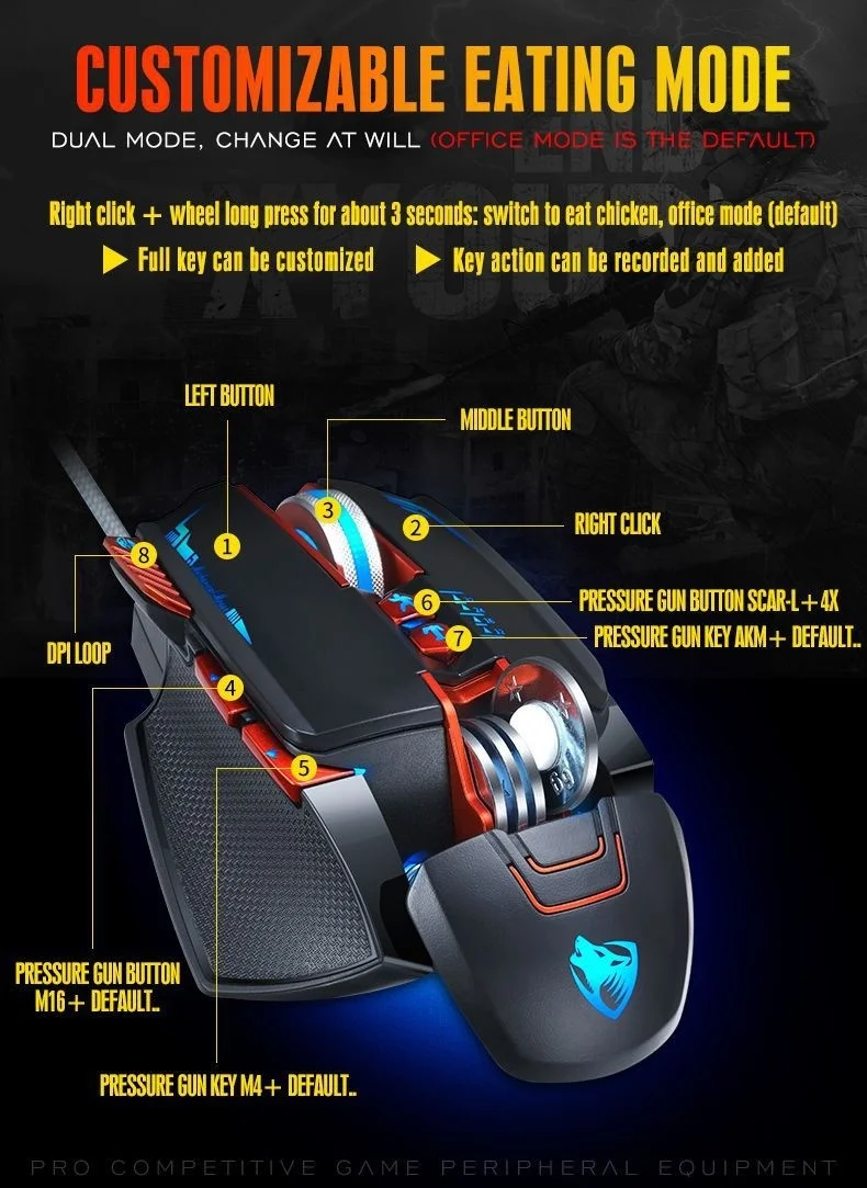 Ratón mecánico para juegos de 6400 DPI, 8 botones, programación Macro, ratón óptico con cable USB para PC, ordenador portátil
