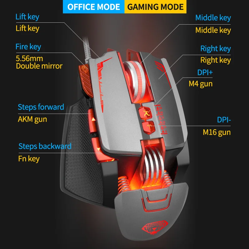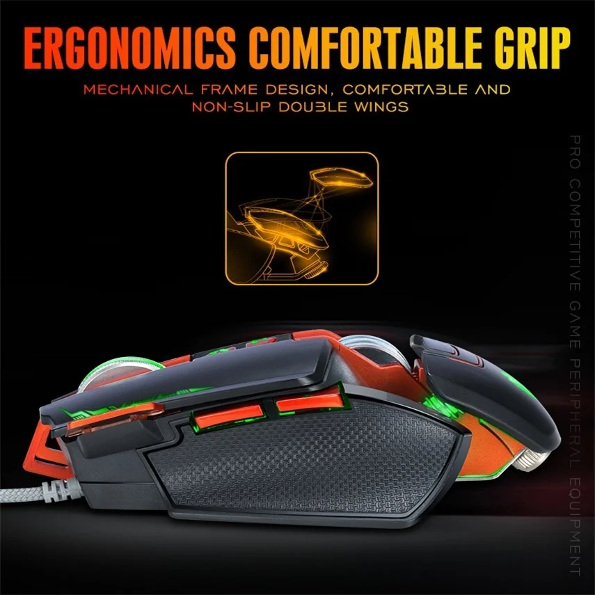 Comprar Ratón mecánico para juegos de 6400 DPI, dispositivo óptico con cable USB, 8 botones, programación Macro, para PC, ordenador portátil