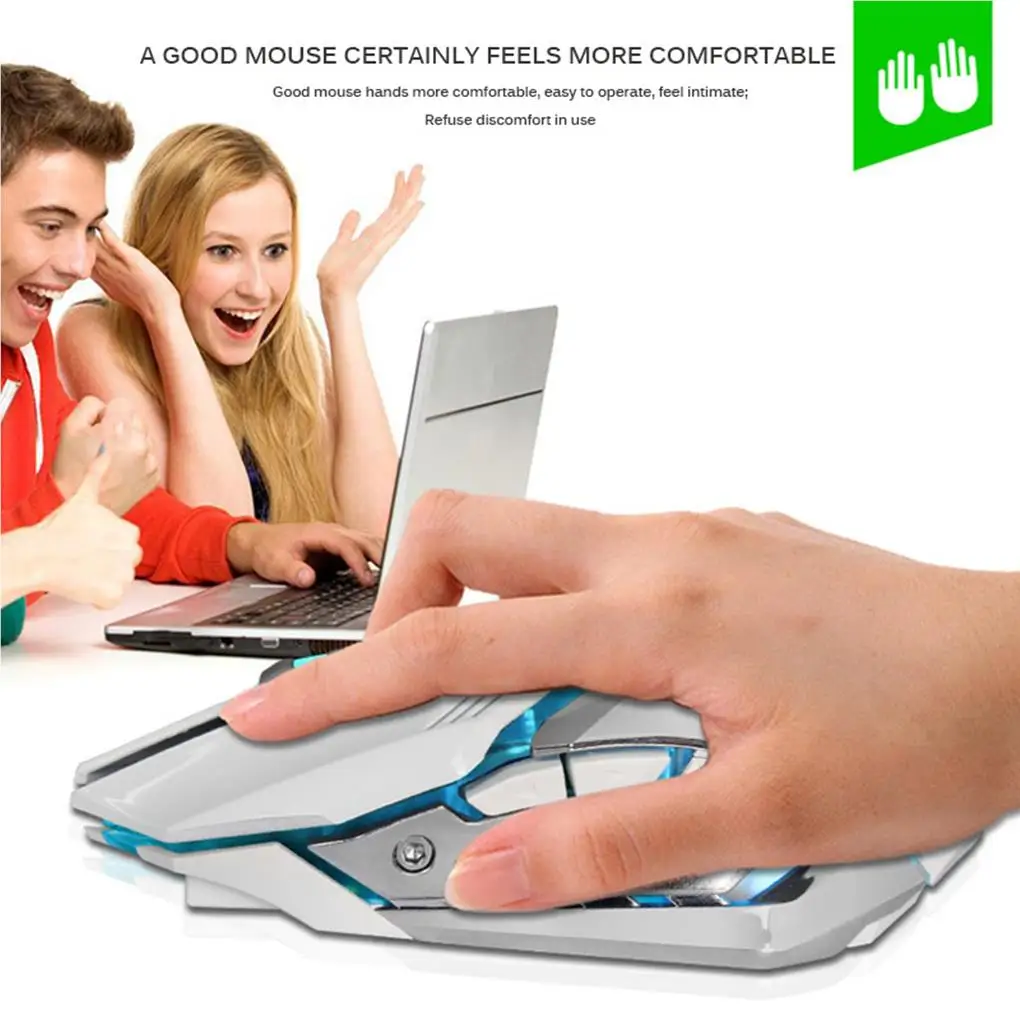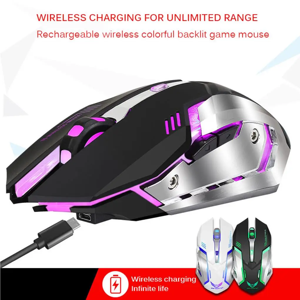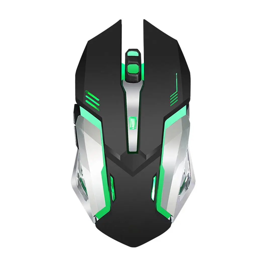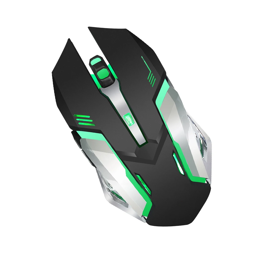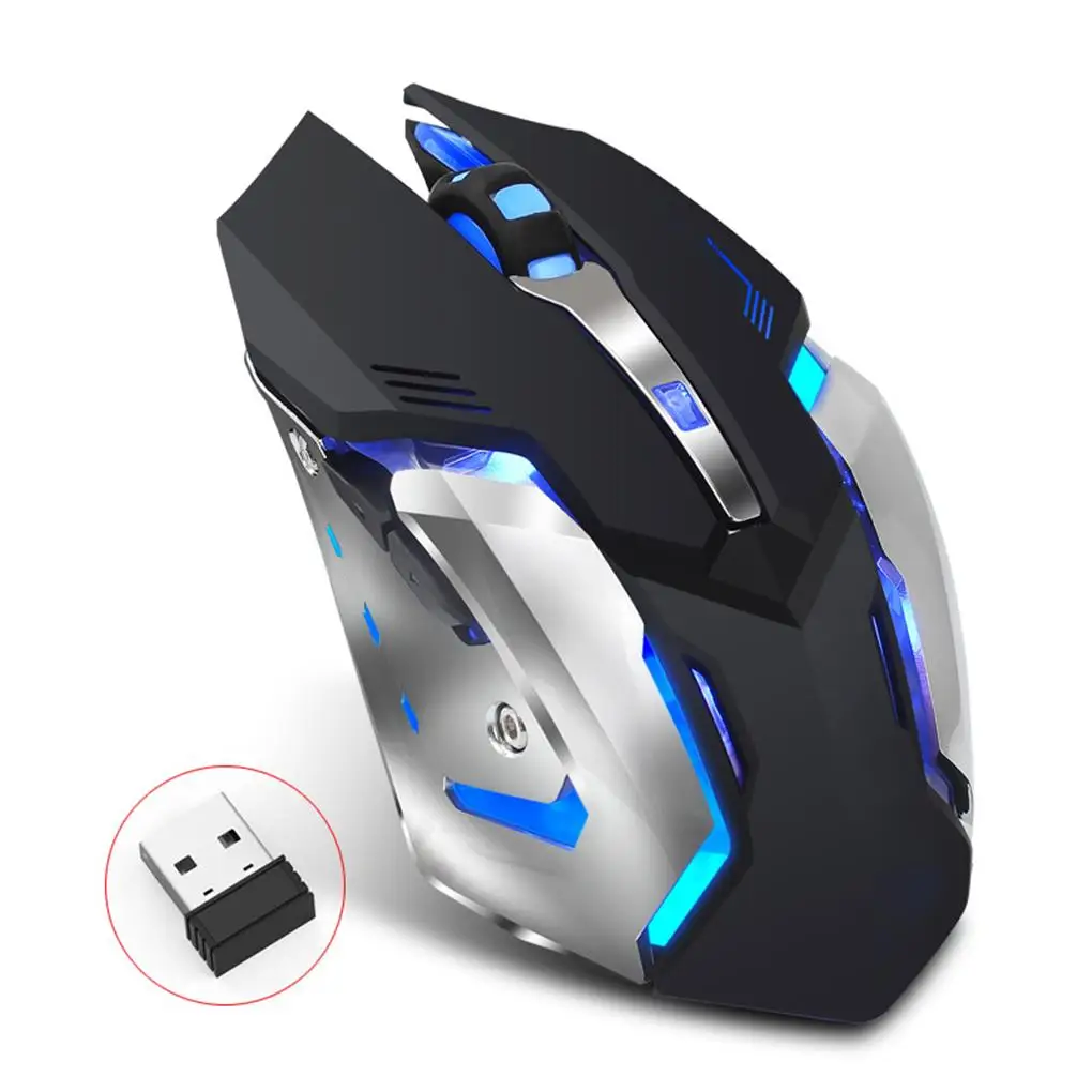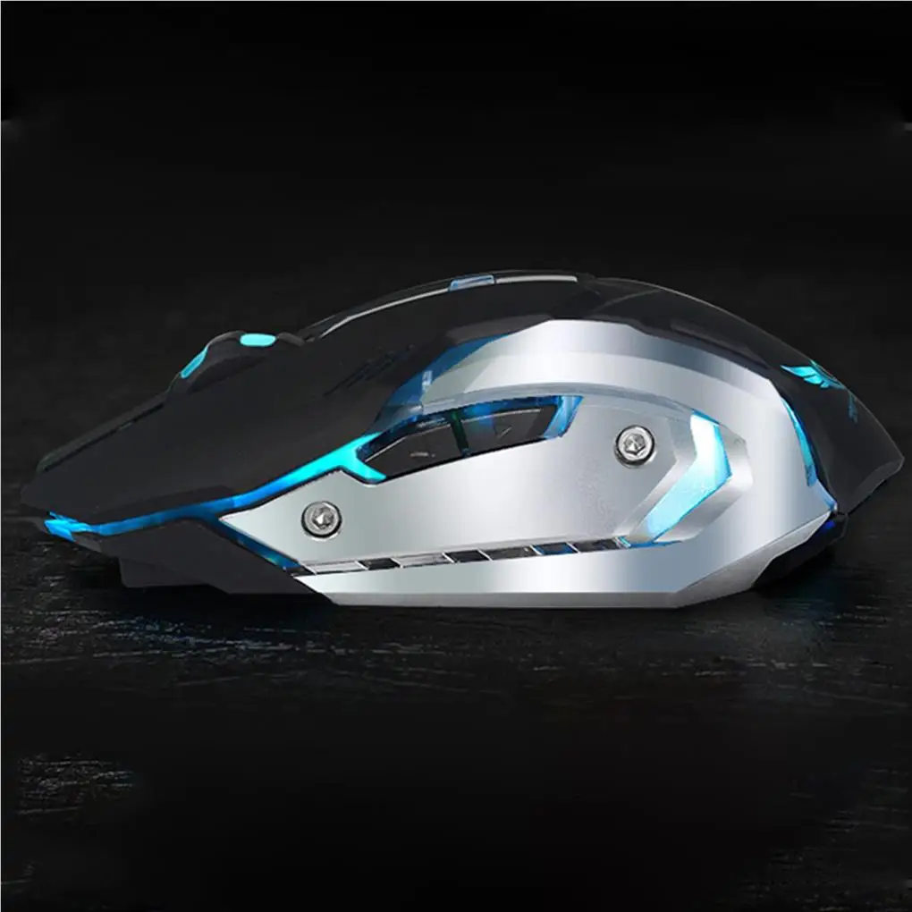 Comprar Ratón de Metal ABS para juegos, periférico ergonómico de 6 teclas, inalámbrico, 7 colores, 2400DPI, recargable, retroiluminación, accesorio negro