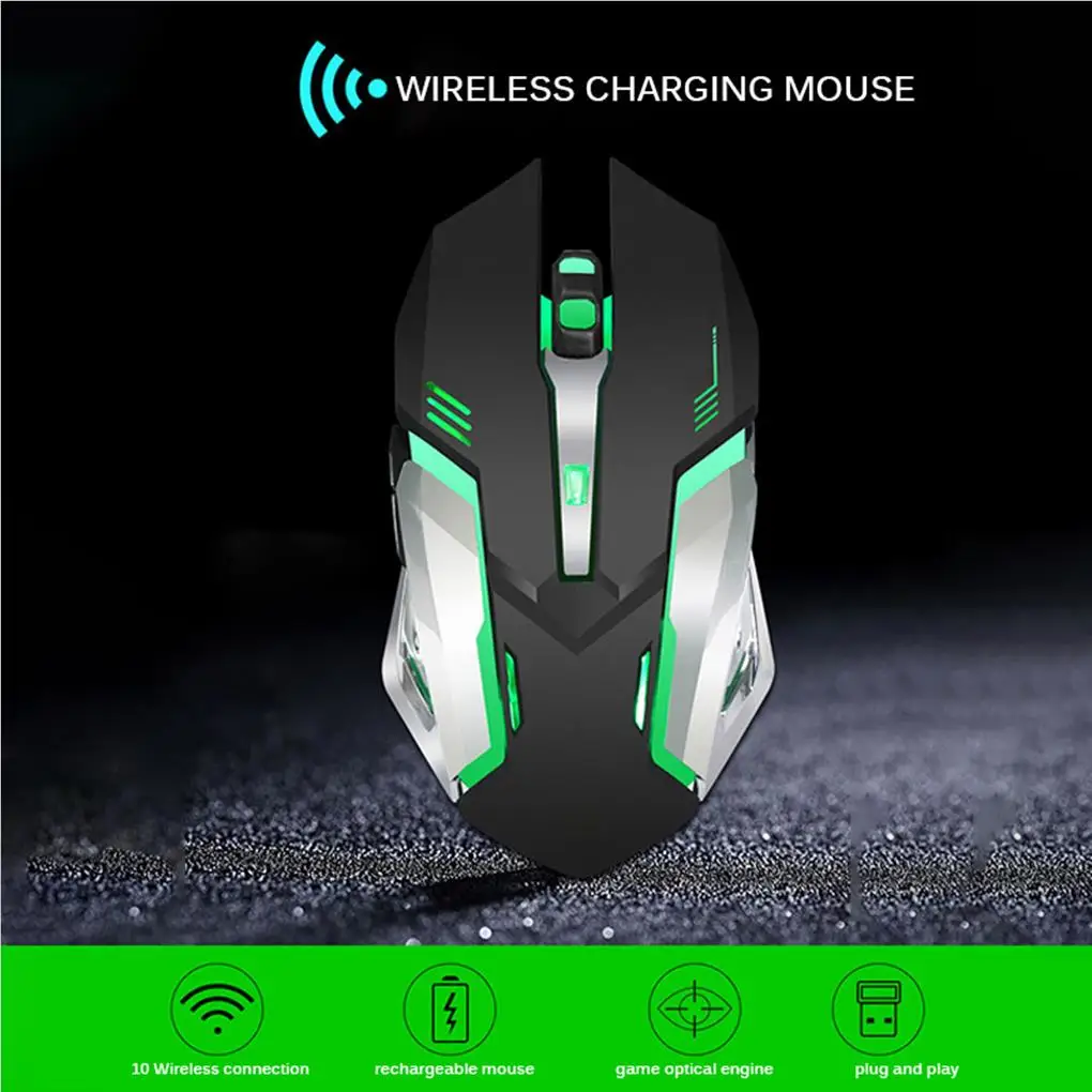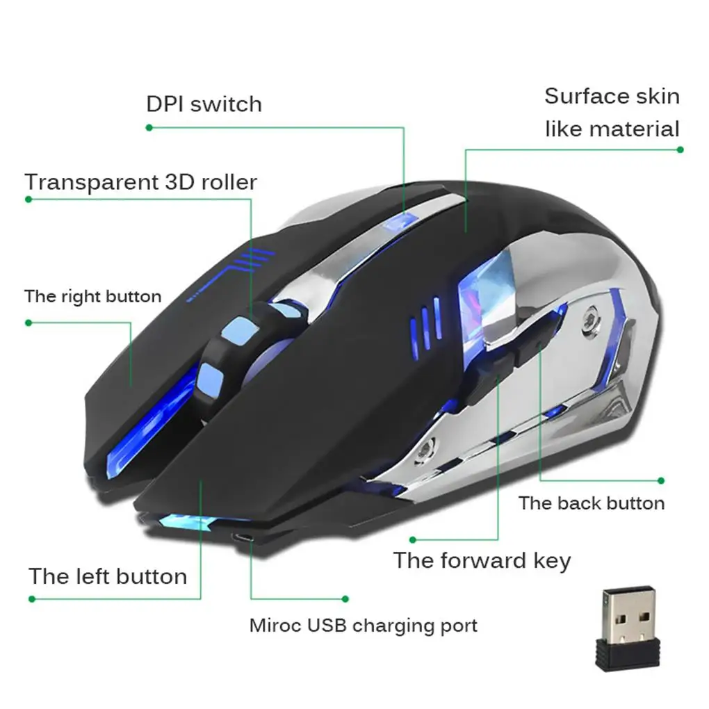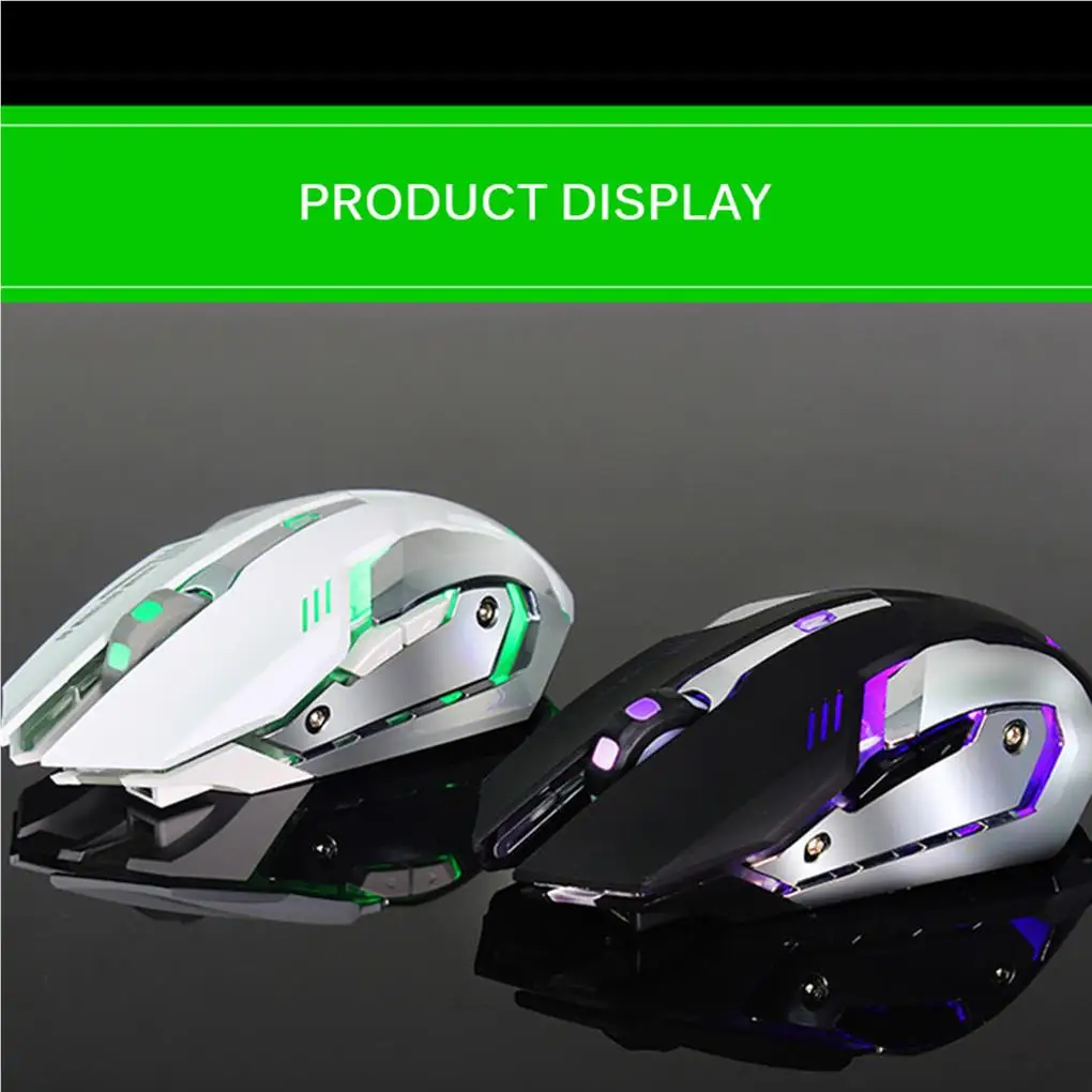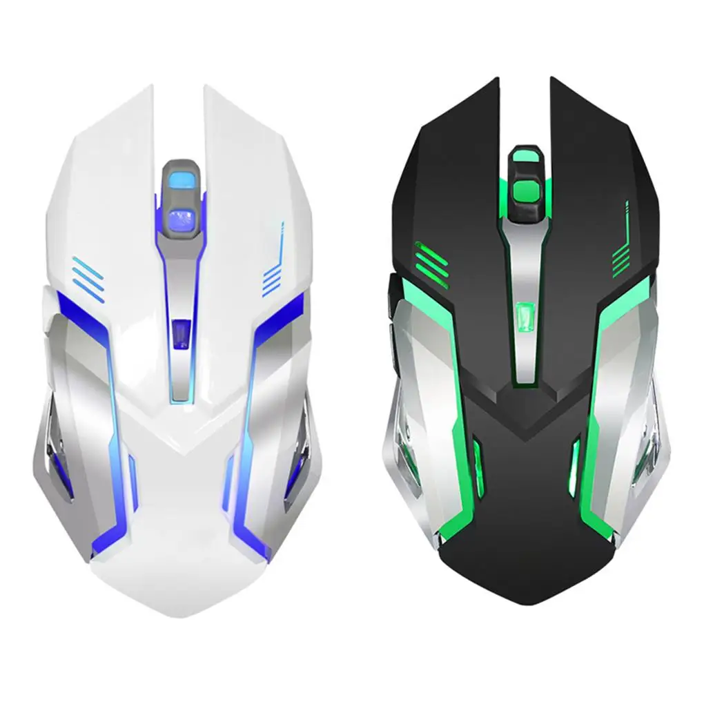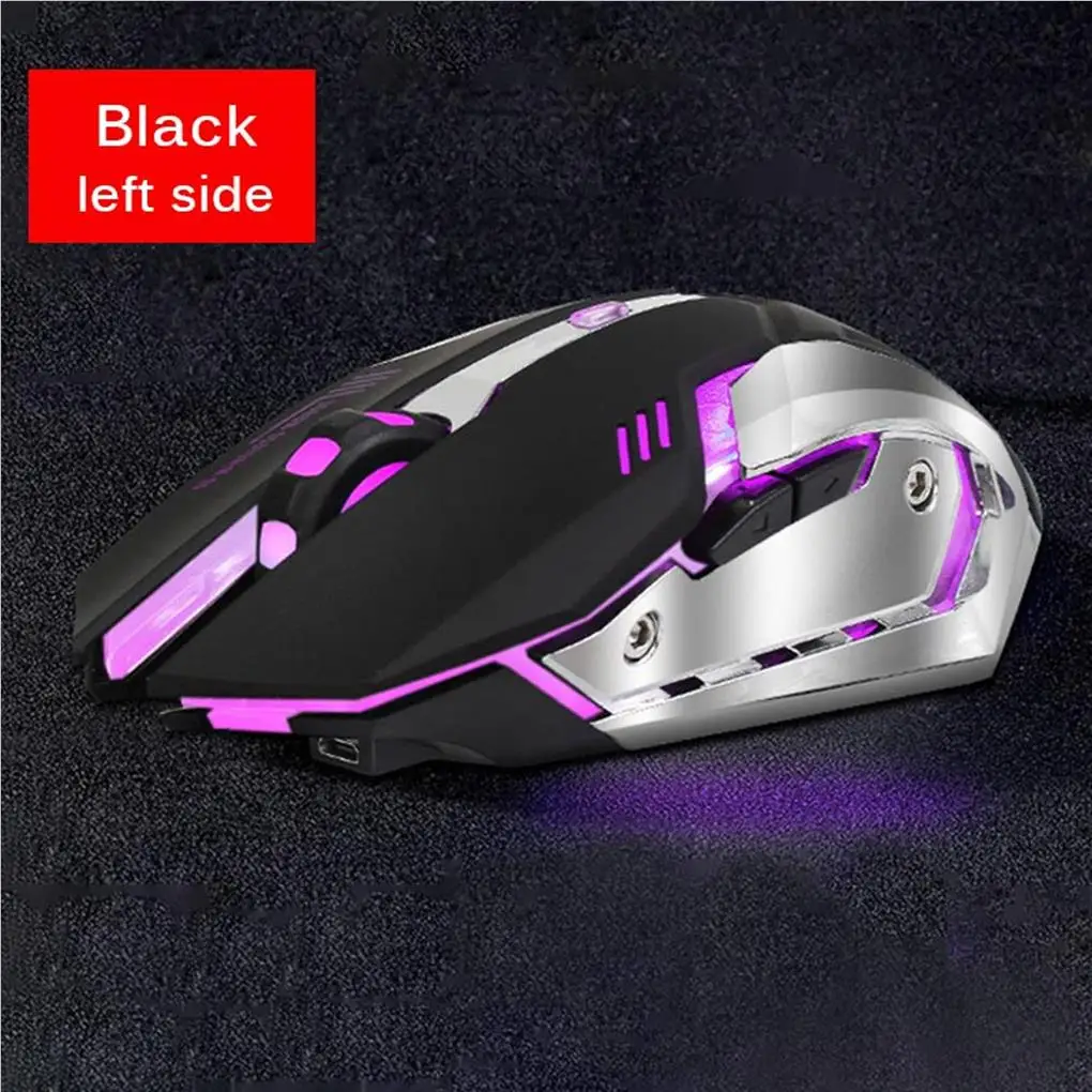 Comprar Ratón de Metal ABS para juegos, periférico ergonómico de 6 teclas, inalámbrico, 7 colores, 2400DPI, recargable, retroiluminación, accesorio negro