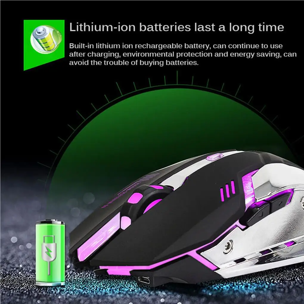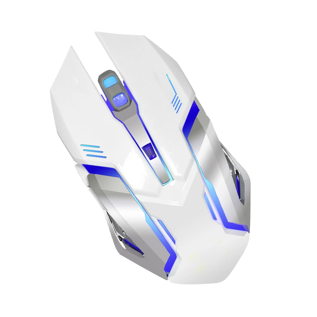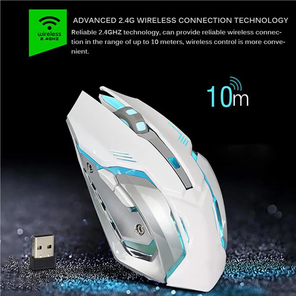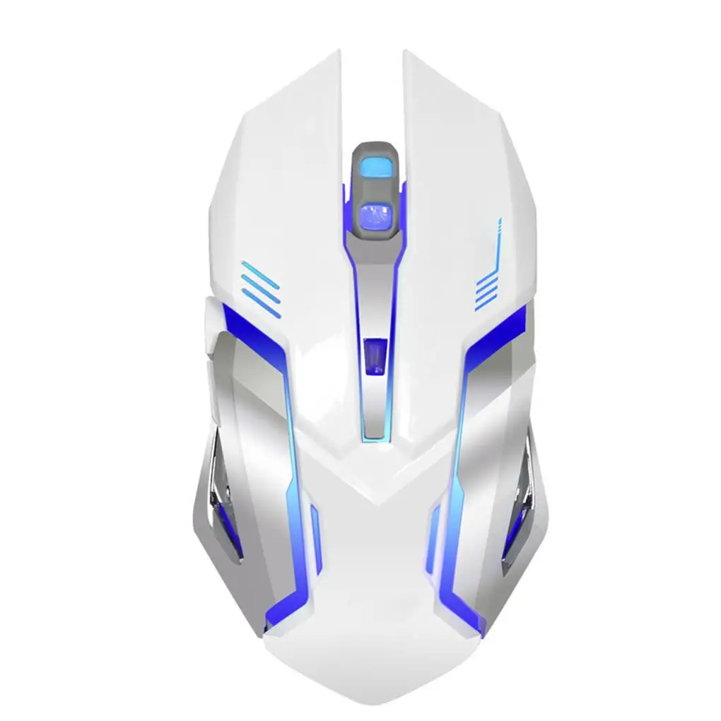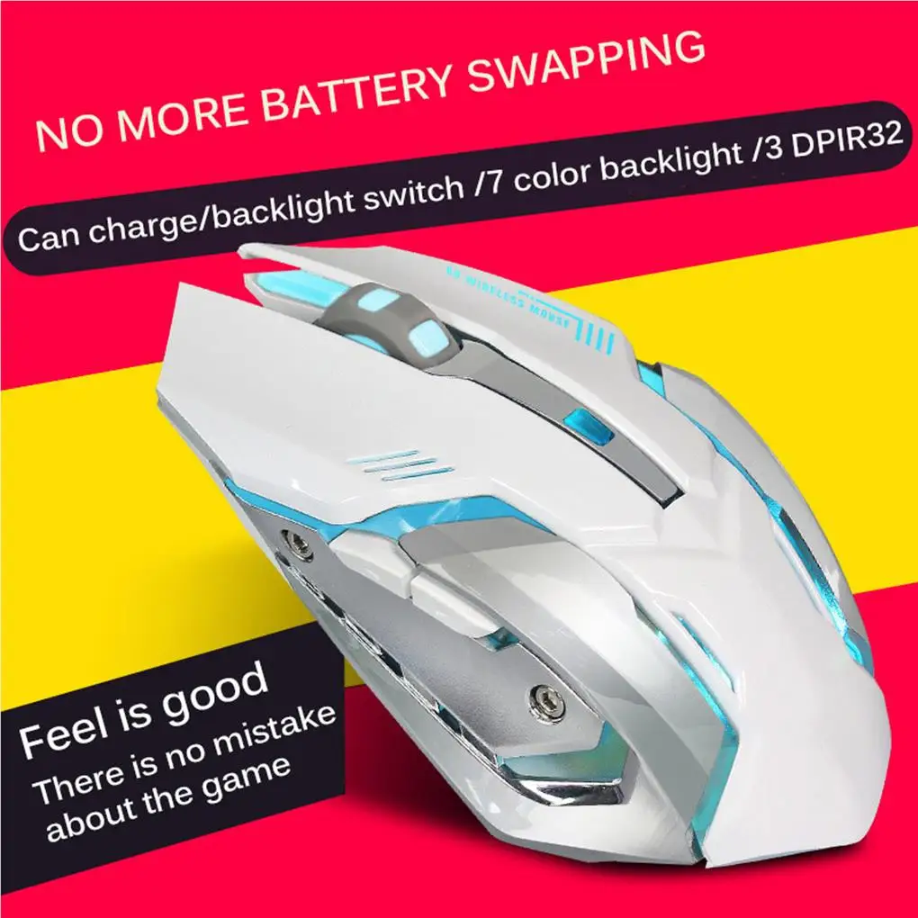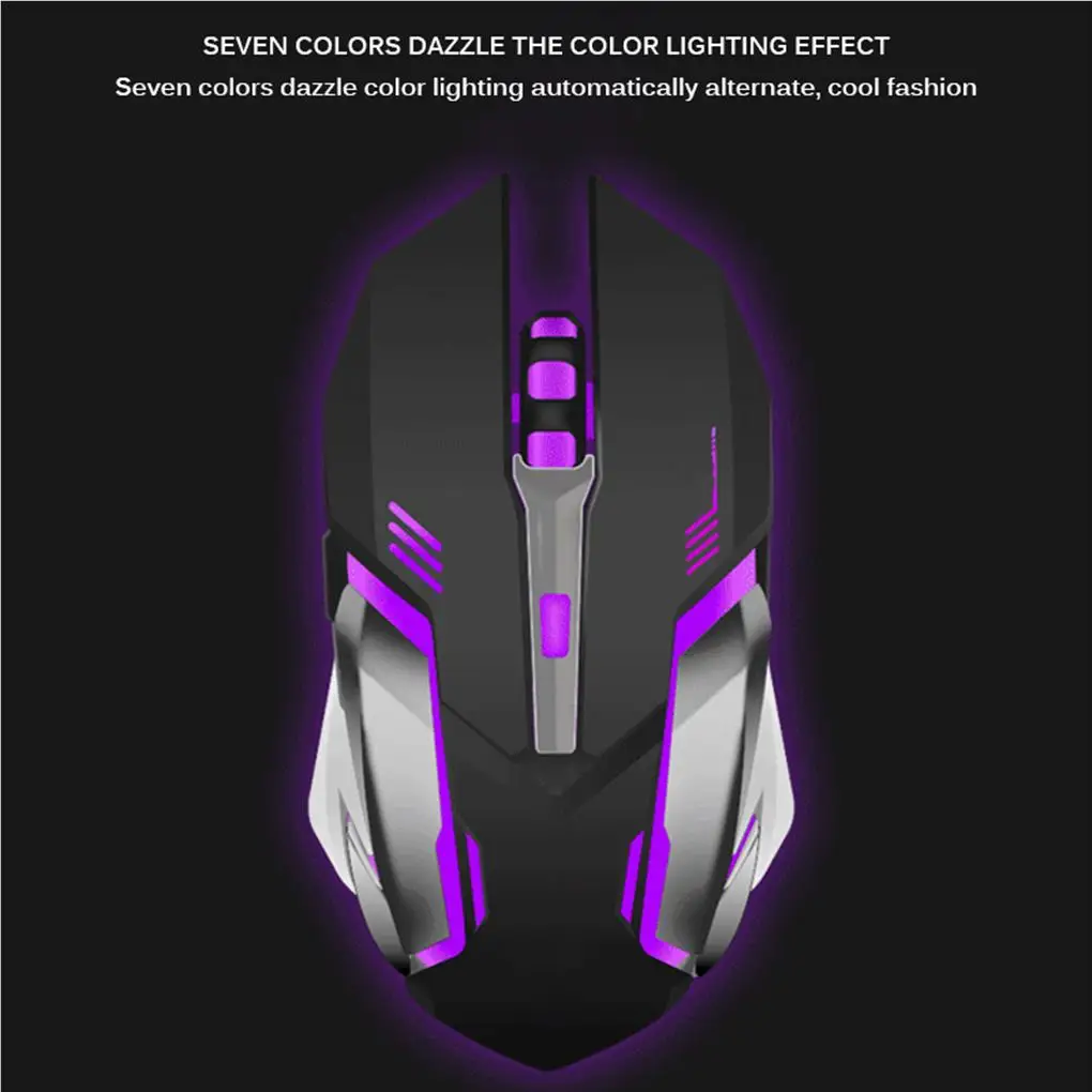 Comprar Ratón de Metal ABS para juegos, periférico ergonómico de 6 teclas, inalámbrico, 7 colores, 2400DPI, recargable, retroiluminación, accesorio negro